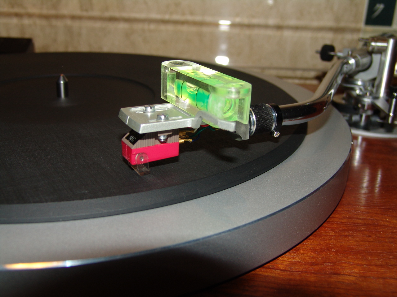 Примерно так делаю, с поднятым тонармом пузырь уровеня уходит от середины.