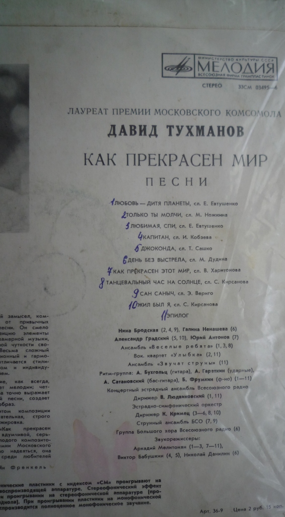 Возвращаясь к Мелодии...Первый альбом Песняров- очень качественно! Год 71-й иль 72-й...