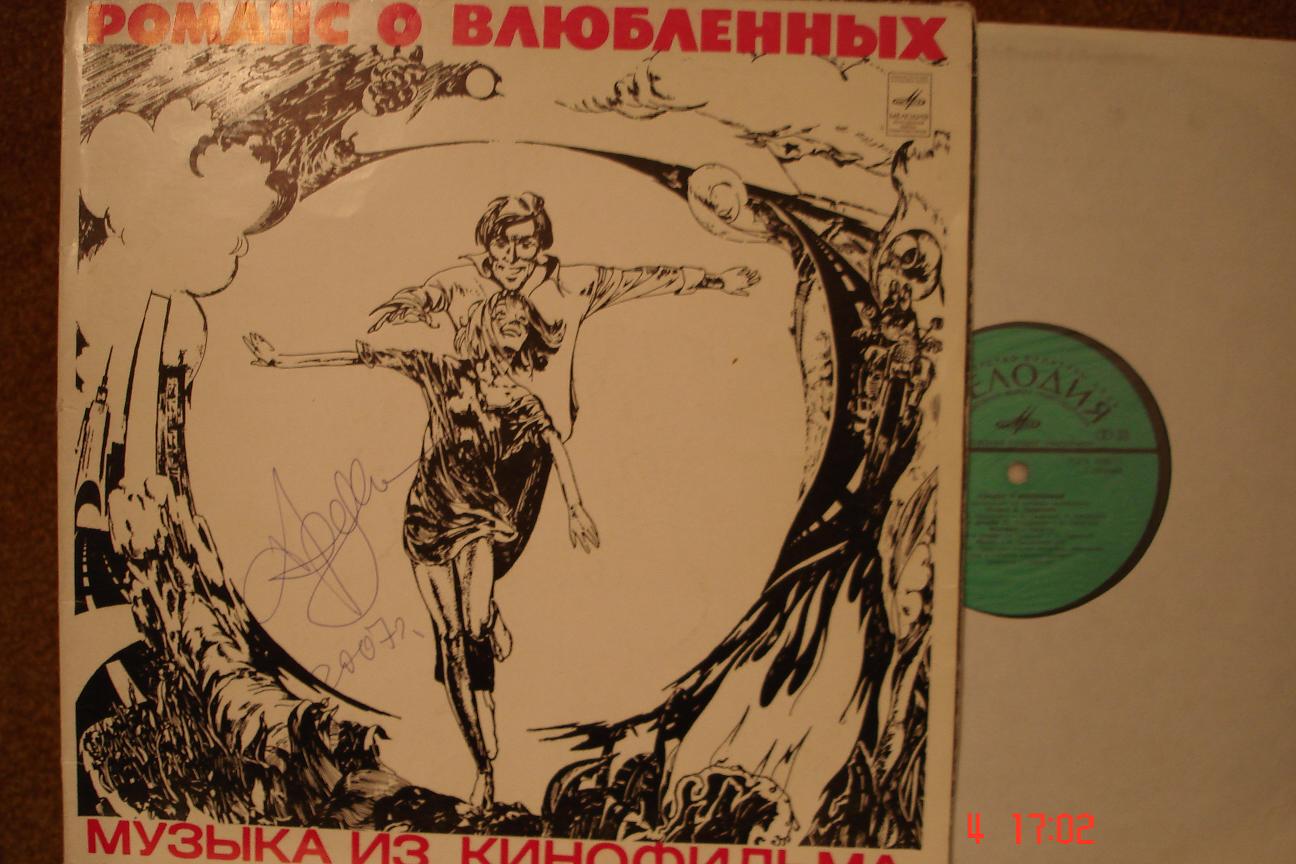 ...только отвлёкся на субботнюю пьянку, а тут столько всякого-разного!... Вернусь к Мелодии. Полностью присоединяюсь к мнению - хорош первый диск-гигант Д.Тухманова! В песнях Весёлых ребят вокально солирует Леонид Бергер. Супер! Увы, несколько лет спустя он свалит в Австралию... Качественный дебют в грамзаписи Александра Градского- Джоконда и Жил был я... Кстати,у альбома в этом году Юбилей- 40 лет! 1972 год... Действительно- жил был я ... Ещё один шедевр 70-х на Мелодии- Романс о влюблённых, звуковая дорожка к фильму. Дебют А.Градского уже как композитора. Если не ошибаюсь- одно из первых на Мелодии альбомное,gatefold, издание конверта... Фильм вышел в 74-м году, а диск чуть позже, видимо в 75-м ... |