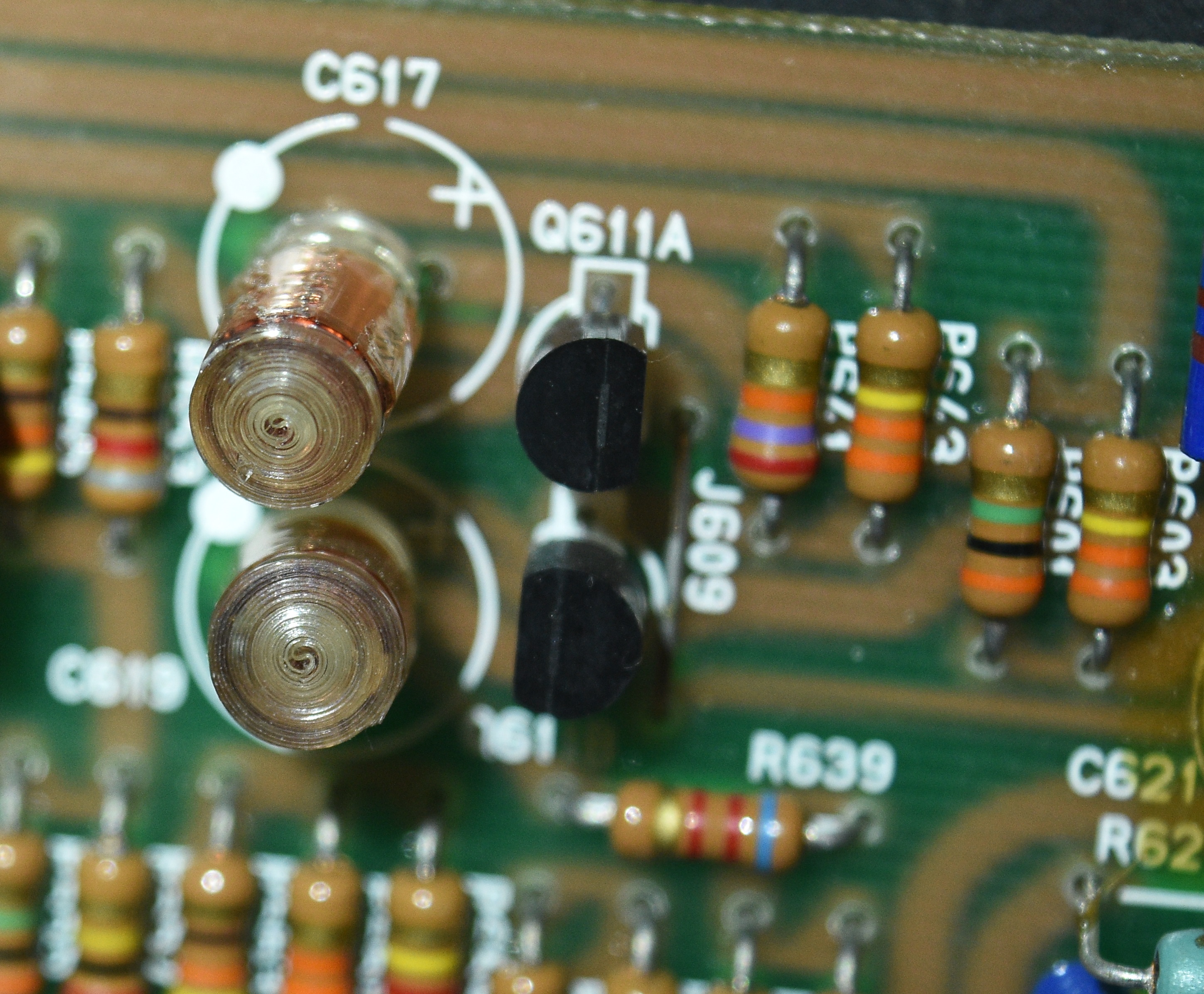 Это меня очень удивило. У пленочных кондеров (они и по схеме - пленочные фольговые) написан плюс и точка. Это обозначение направленности конденсаторов. |