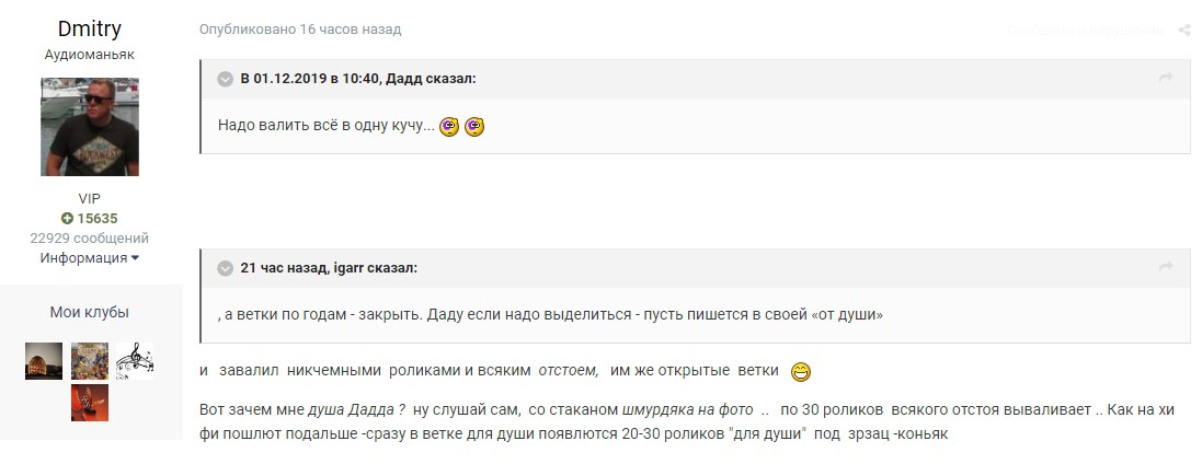 Была тут весёлая ветка – «Музыка для души» местного гуру и любимца публики.