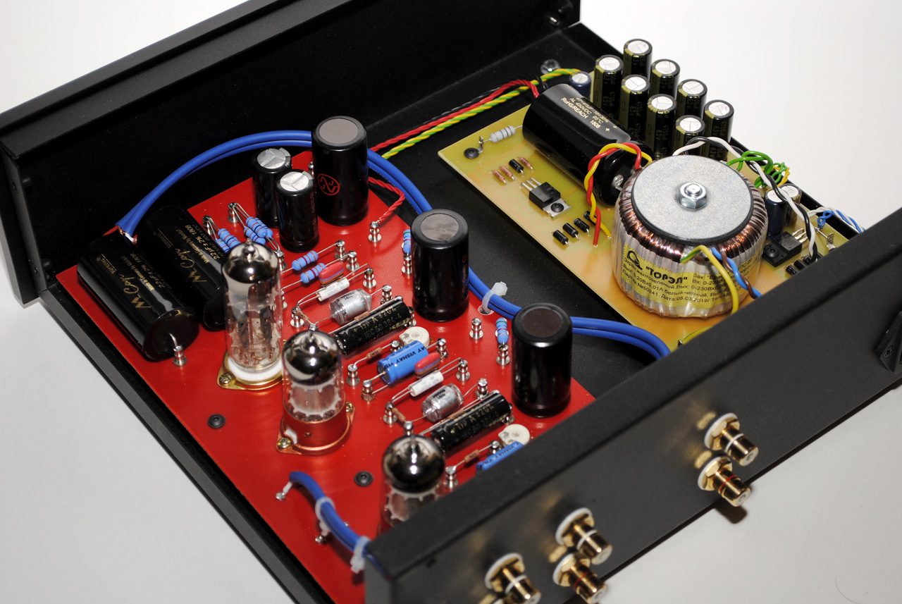 Фонокорректор на лампах EF806S Gold и ECC99 Gold с двумя входами в Омск.