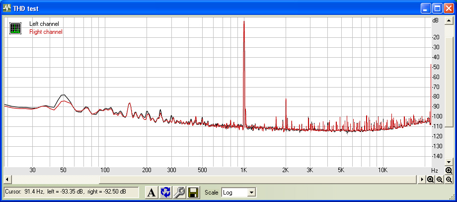 Дмитрий! Думаю, с фоном мы разберемся. Вот график измерения КНИ Вашего корректора, где видно, что уровень пульсаций на 50Гц лежит в пределах -80дБ.