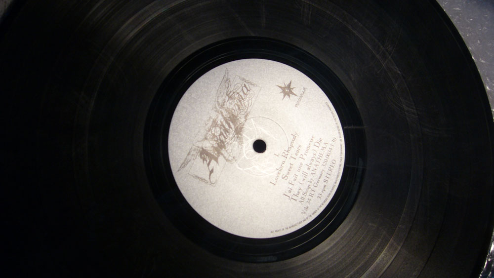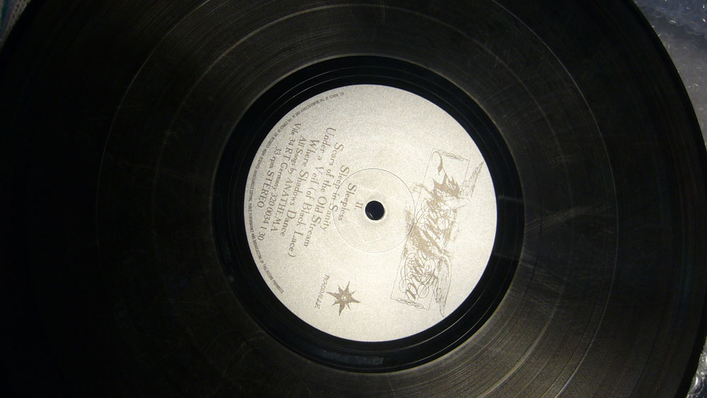 Да вот как посылку раскрыл, так и оторопел - это что, "ниэр минт" такой, что ли?! Оно, правда, воспроизводится отлично, да вот на свет выглядит цветом аж бурым подчас! Разводы у отверстия имеются в умеренных количествах. Винил 1993-го года рождения. Прочий стафф того времени от этого лейбла (Peaceville) у меня выглядит как полагается.