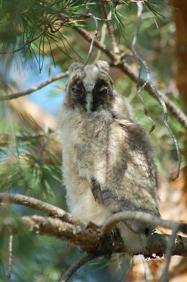 Приходят каждое лето. Целым семейством. Дочке потеха. А этим летом вот такой "зверь" жил на сосне - сова гнездо свила прямо напротив дома. Пока летать не научился по сосне пешком гулял. Когда в один прекрасный день улетел, большая трагедия была для дочки.