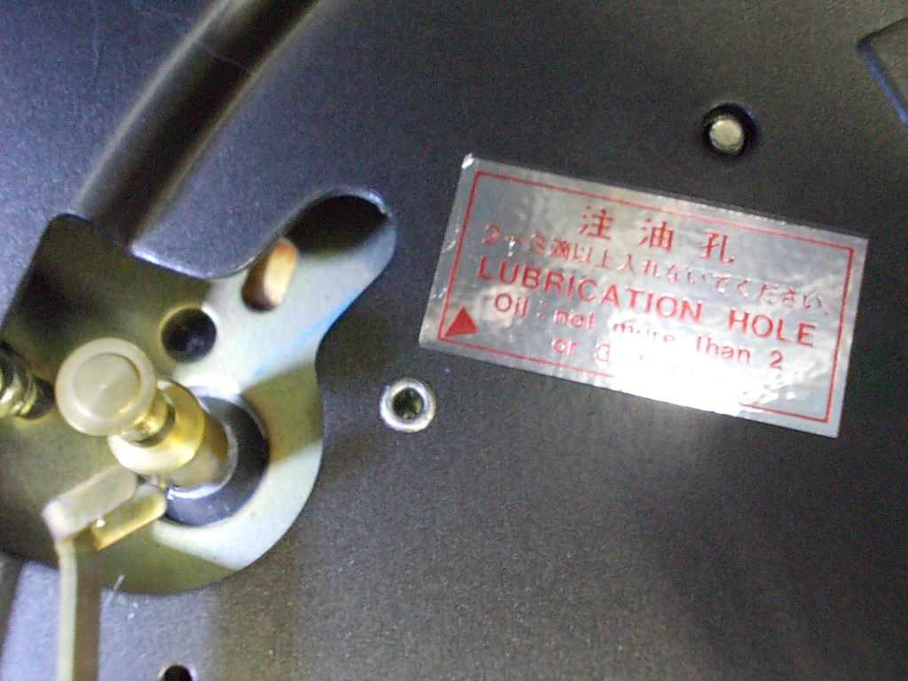 Еще фото - того же Пионера 70х годов. Показана точка смазки дигателя - там сделан сток для попадания масла прямо в подшипник мотора из точки смазки.