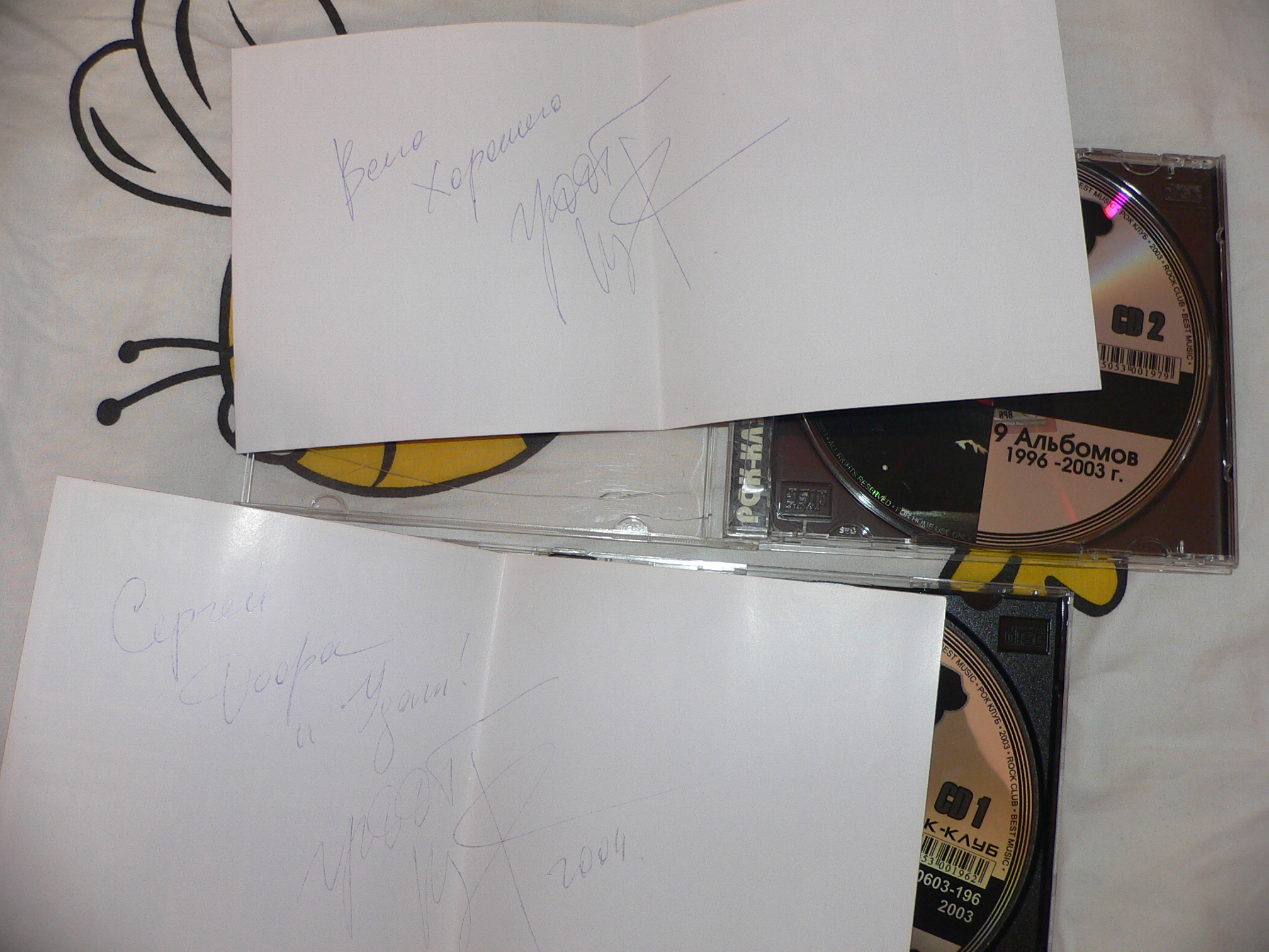 после концерта московского,трубач оставил афтограф на двух пластинках |