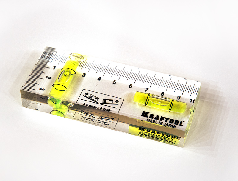 Я уже более десяти лет пользуюсь тяжеленным ( порядка 1 кг ) прижимом, в маковку которого вмонтирован уровень.
