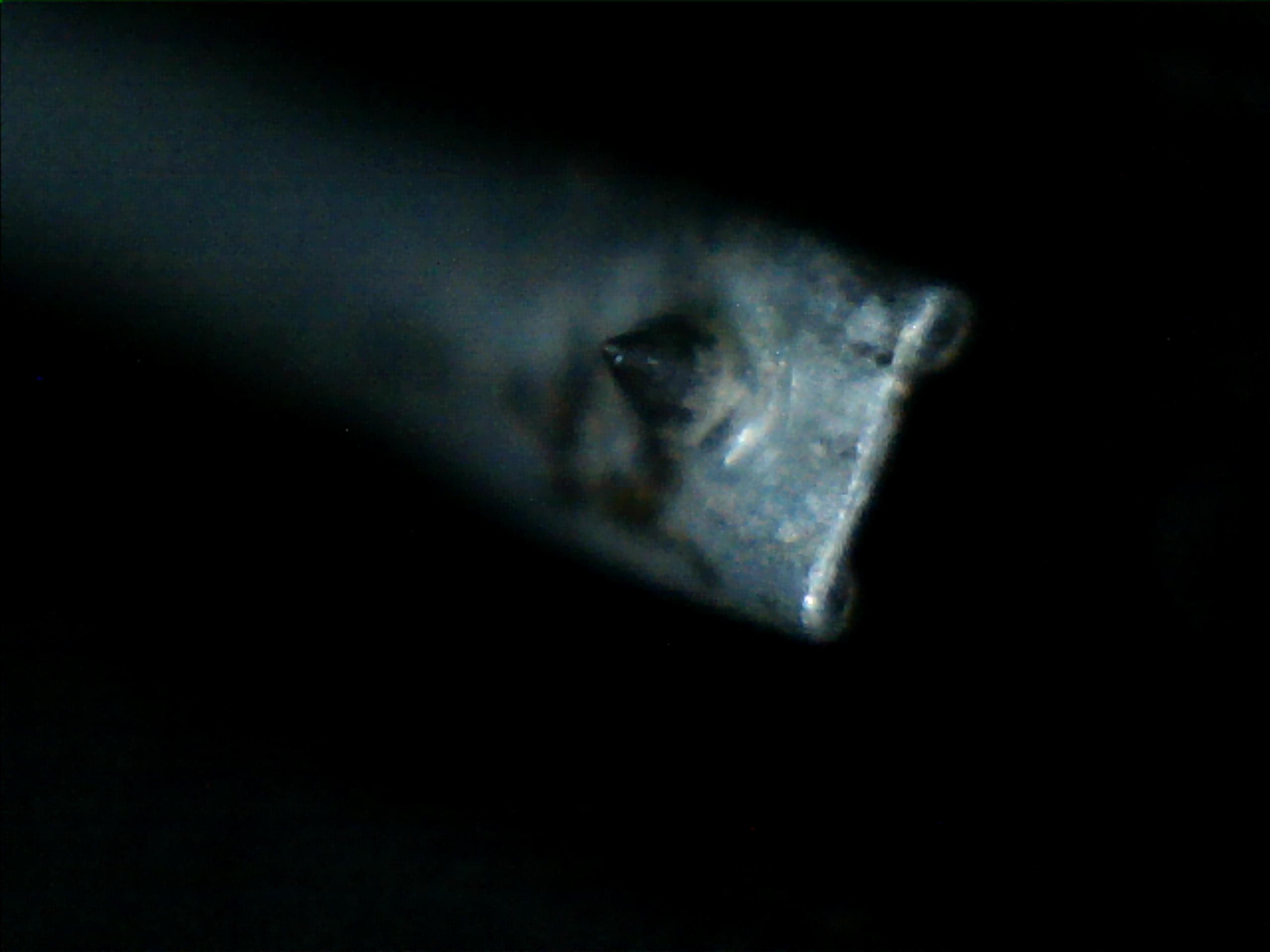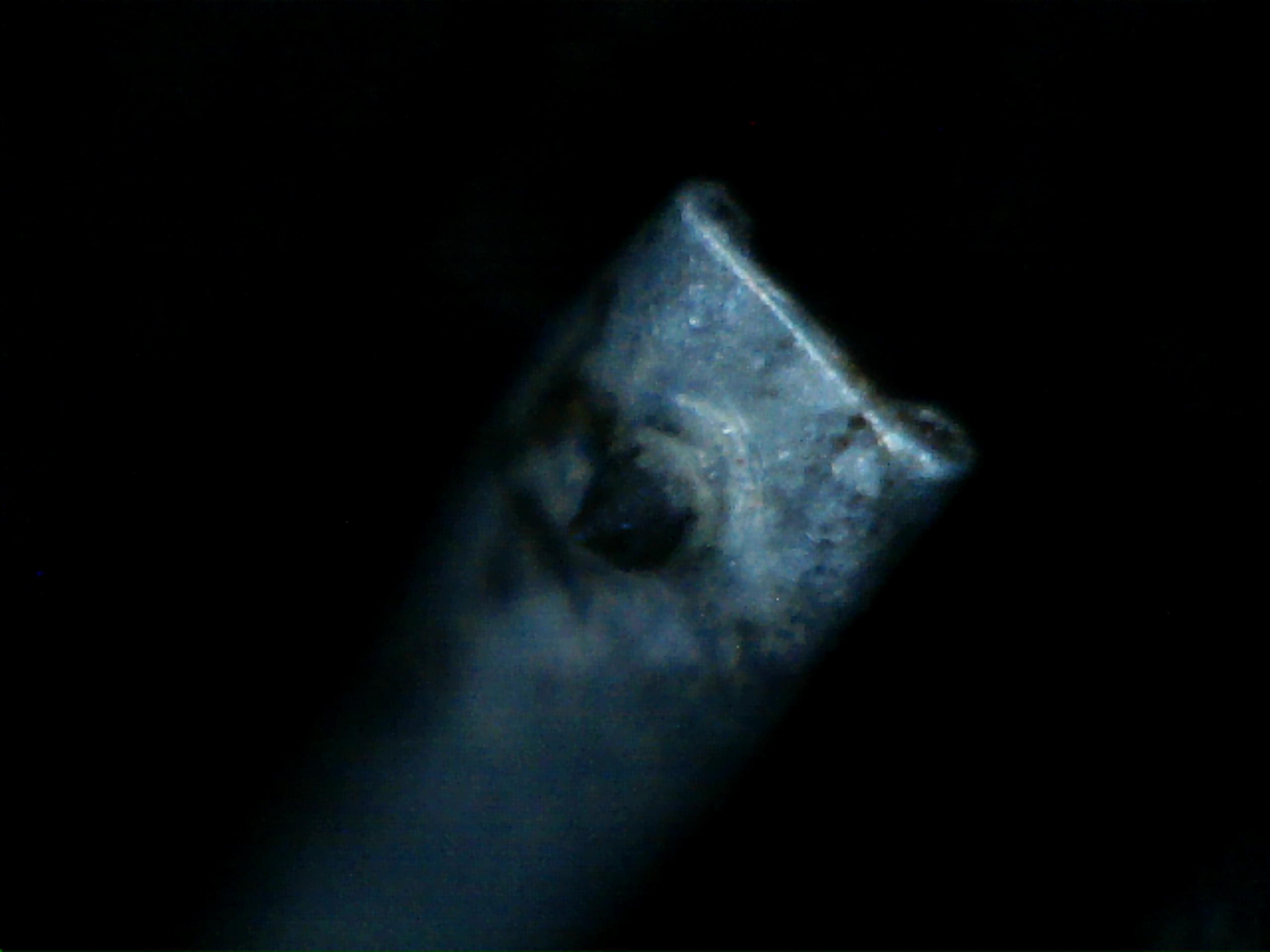 На самом деле очень долго эксперементировал со светом. При ярком получается пересвет и мелкоскоп перестаёт видеть кристалл и соответственно фокусироваться на нём. На всём чём угодно, ны пылинках, пластике вокруг, только не на алмазе. Он хоть и чёрный (к стыду моему он действительно не умывался давно
