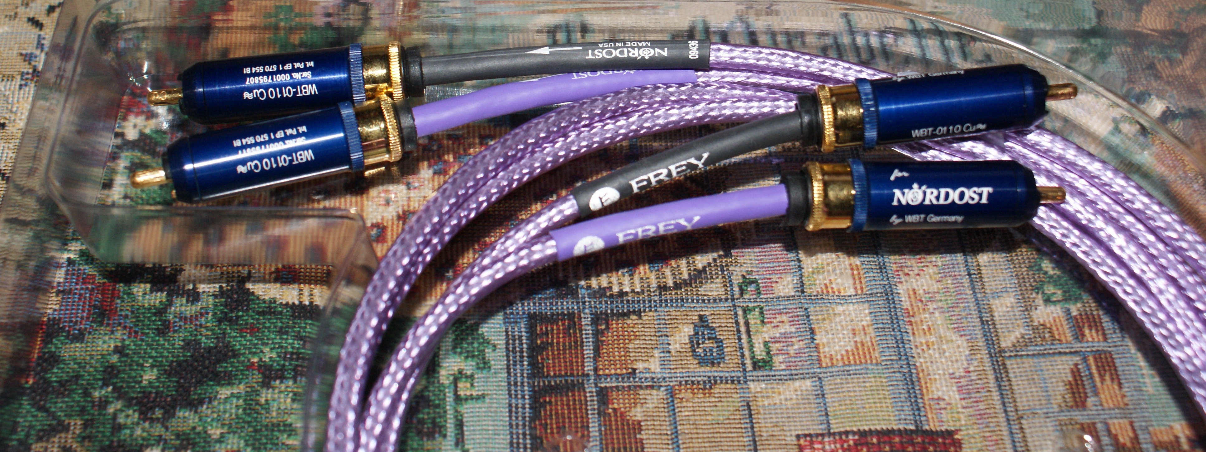 у меня сейчас от тонарма до фонокорректора идет кабель luxman 5Din штатный заводской ,от фонокорректора до усилилителя nordost frey