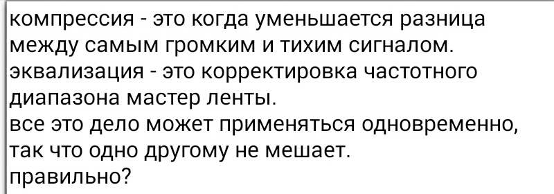 Очень рад, что на своём пути в звук вы открываете для себя азбучные истины из серии "мои первые книжки"..