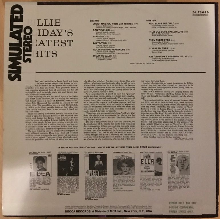И не говори, просто релакс Billie Holiday's Greatest Hits! |