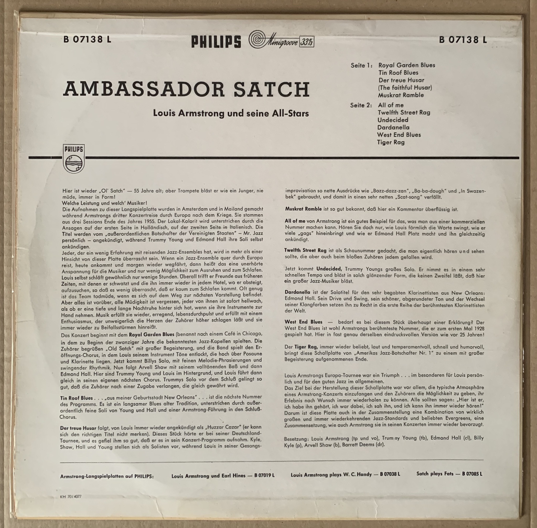 Зацепил очень симпатичного Армстронга. Подкупило состояние винила, да и вообще не могу мимо него пройти
