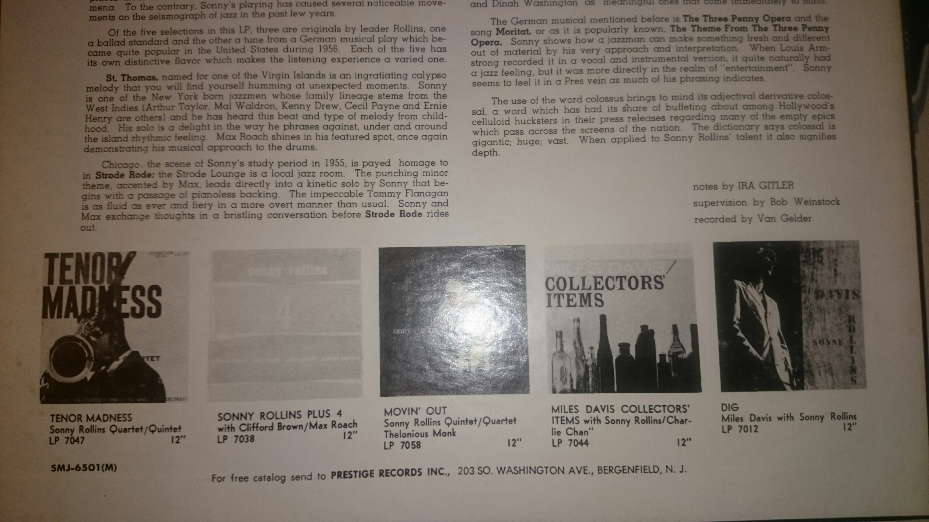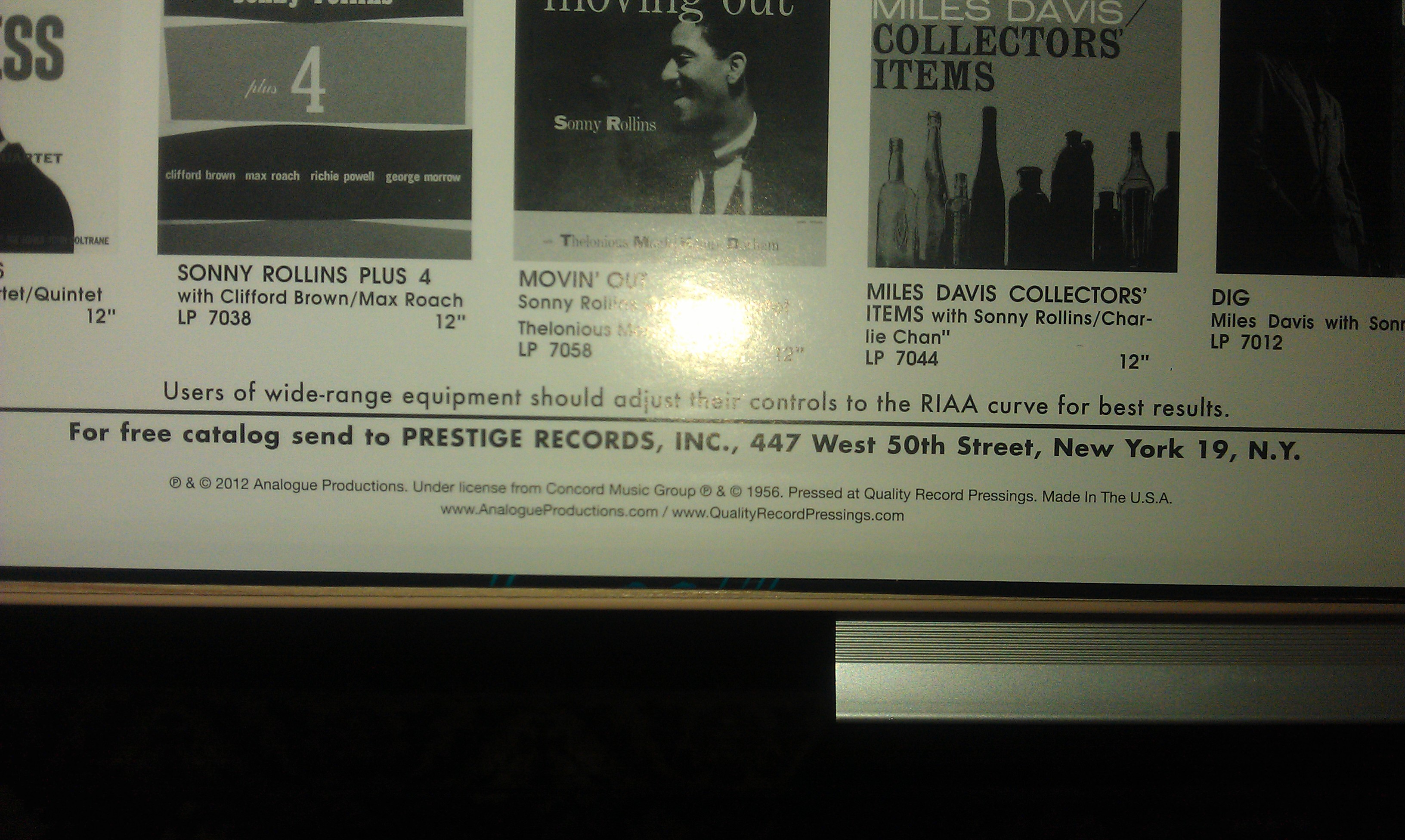 Мне сказали, что запись моно. Я прослушал пластинку вскольз, еще и под небольшой "мухой". Сегодня, правда, не слушал. Мне вчера показалось, что запись стерео. Но не стал себя убеждать в этом. Завтра еще раз прослушаю. А вообще это АР/Prestige.