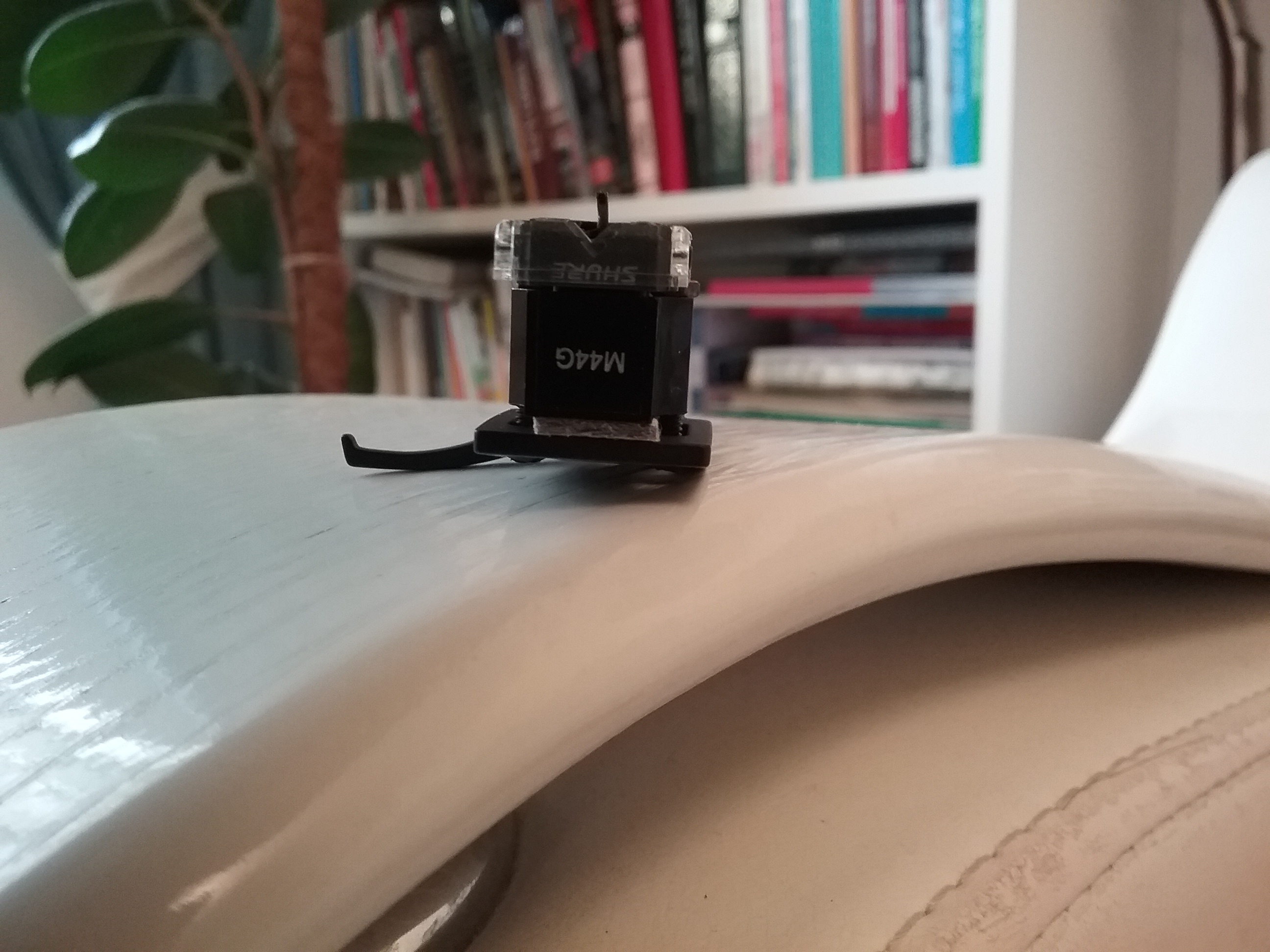 3. SHURE M44G + родной шелл Technics - не ставил на шелл еще, с грузиками надо будет смотреть (надеюсь, не нужны будут, т.к. Ортофон - 7, 2 гр., Шур - 6,7 гр.). Что делать с высотой тонарма - пока не знаю (может быть, придется решать проблему за счет квадратного груза 3 гр. на шелл, миллиметра 2 доп. высоты он даст).