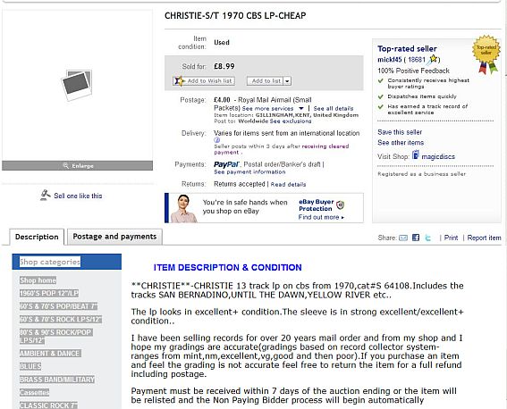 Доставка у него недорогая, а насчет выбора верно. Помню, что у него брал,то тоже по одной пластинке, добрать нечем было.. |