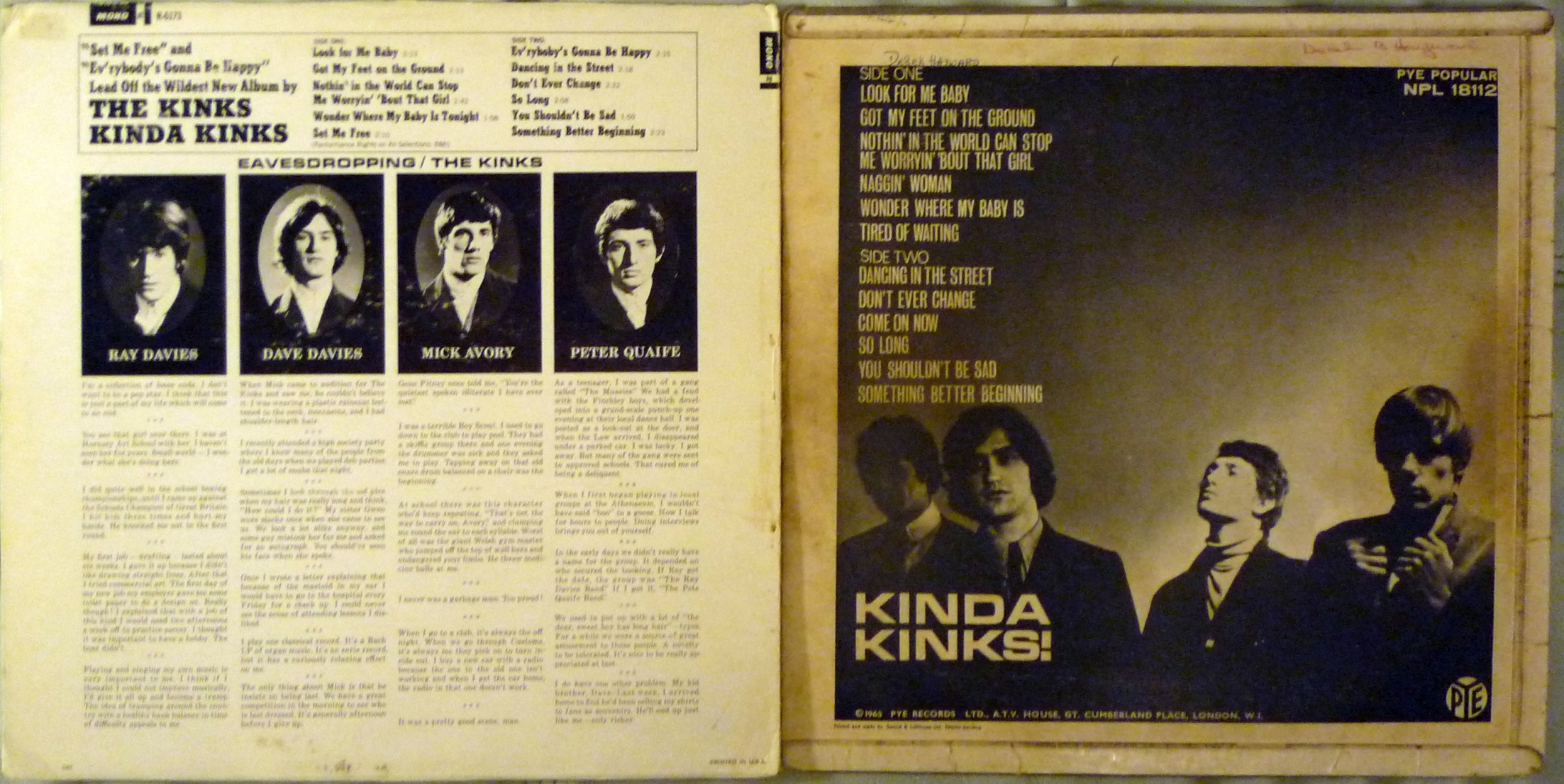 Спасибо Серёге "Кшиштофу" за приём и пластинки. Теперь можно сравнить Kinda Kinks американца и англика. Оба моно. Играют оба практически монопенисуально. Американец немного погромче, и поярче. Трек-листы отличаются - в америкосе 12 песен, в англике 13, плюс одну песню америкосы заменили...