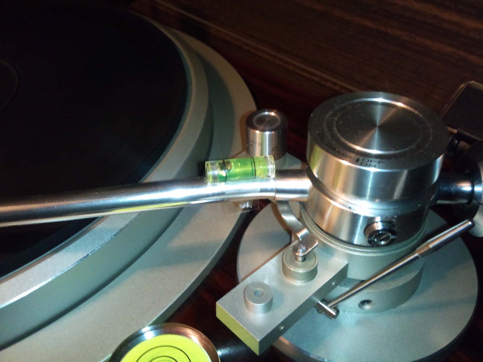 Мы параллельность тонарма к пластинке вроде выставляем. А как выставили, данную приблуду снимаем.