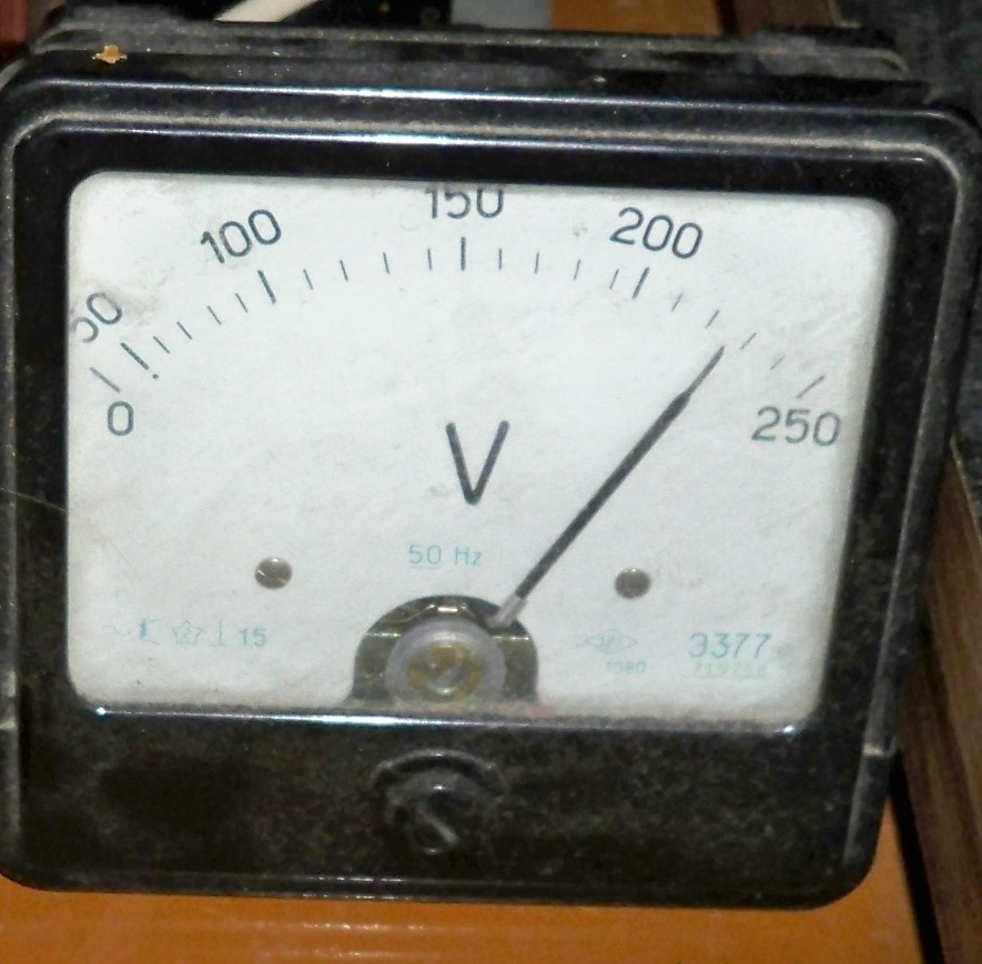 Вот сейчас сфотал, на постоянке рядом с железом стоит Vметр, обычно 230 но может и 250 быть..