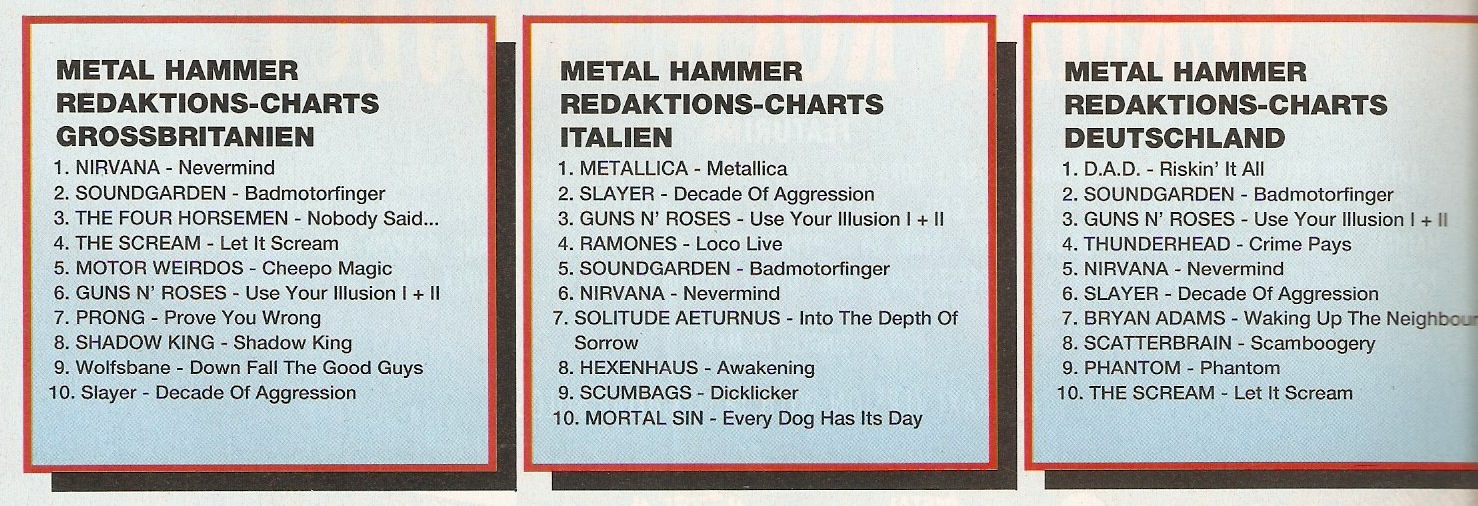 и хит парад редакций Метал Хаммера Британии, Италии Германии