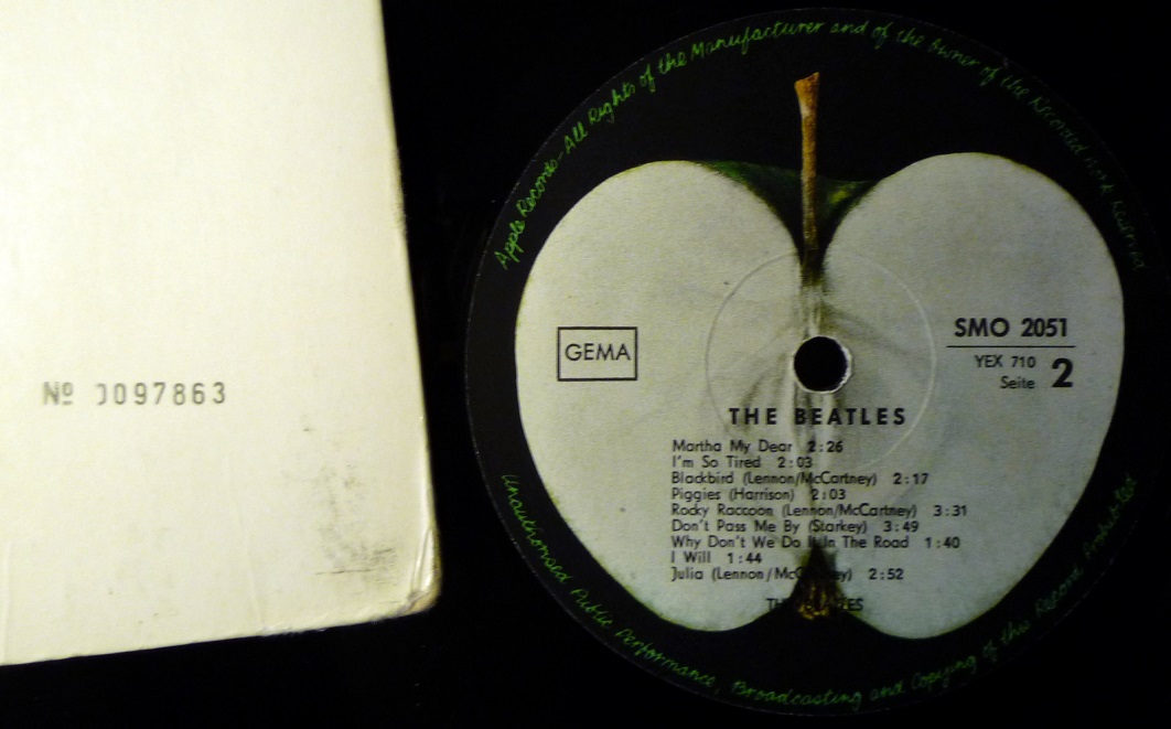 Во чЮдеса - на твоём выдавлен номер, а на моём напечатан.... Действительно, любопытно... А на торце конверта номер SMO 2051/52 соответствует? У меня было несколько более поздних немецких Белых. На всех давленый номер... Надо спросить у главного битл-эксперта Вадима! |