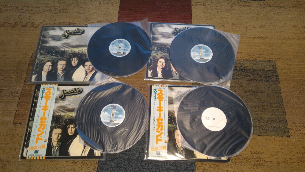 У меня 30 % японских пластинок. По многим релизам хард рока соглашусь. Софт рок, попса, диско, электронная музыка , мне нравится на япах. Слушаю на очень тяжелых микрах, головки подбираю тщательно. На фото один из альбомов Smokie. В наличии два английских издания и два японских. Еще где то немец затерялся. На японском тесте звук больше всех нравится.