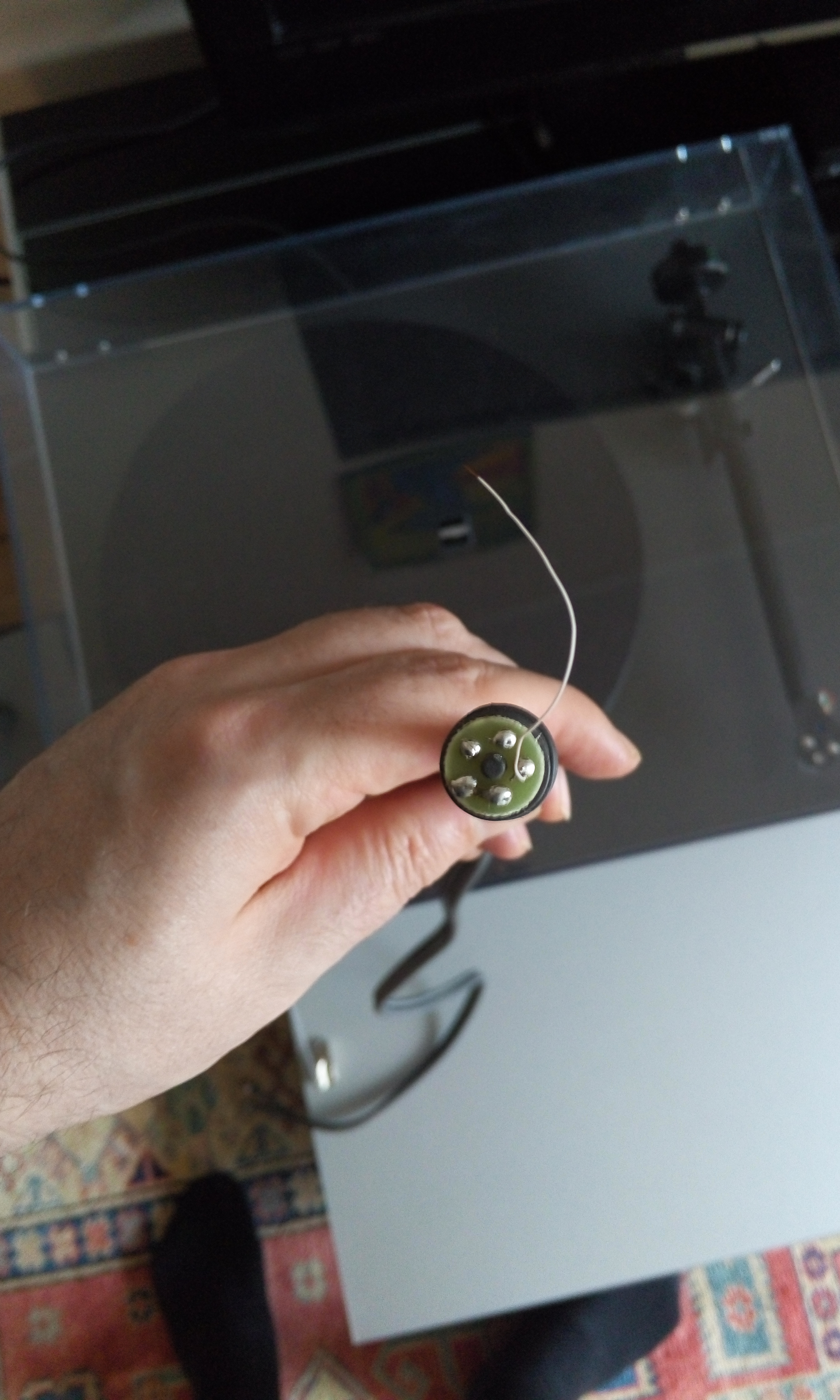 Заметил шум, даже при отключенном моторе, растет при увеличении громкости, провода перекладывал, не помогает. Картридж вроде боле менее, но куплен бу.