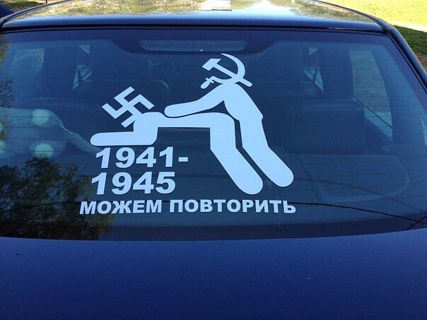 Наклейка похабная. А про "Можем повторить" - лучше не надо. У них 7 млн жертв, у нас 27 млн.