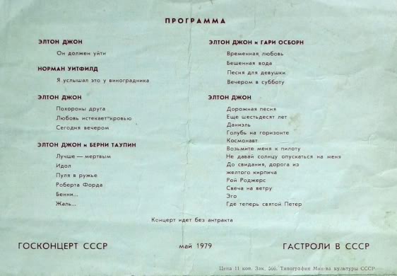 Гастроли Элтона 1979г. Москва. Программка..