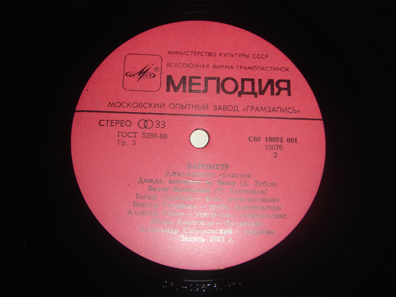 Джаз-Квинтет Солистов Барометр 1983 Все участники из ансамбля Мелодия, видать решили сбацать сольник. Вагиф Садыхов, Виктор Гусейнов, Алексей Зубов, Игорь Кантюков, Александр Симоновский.