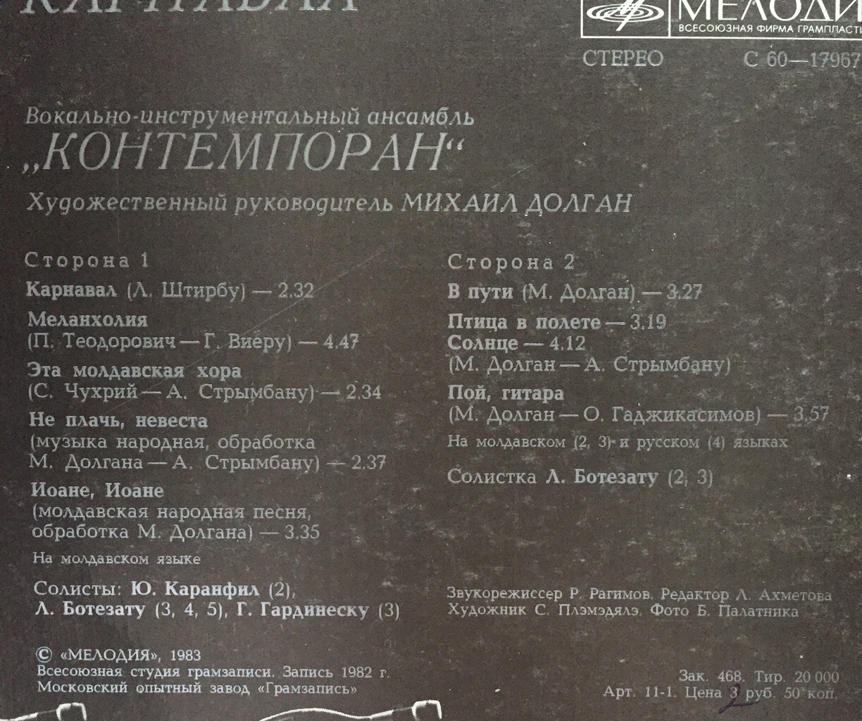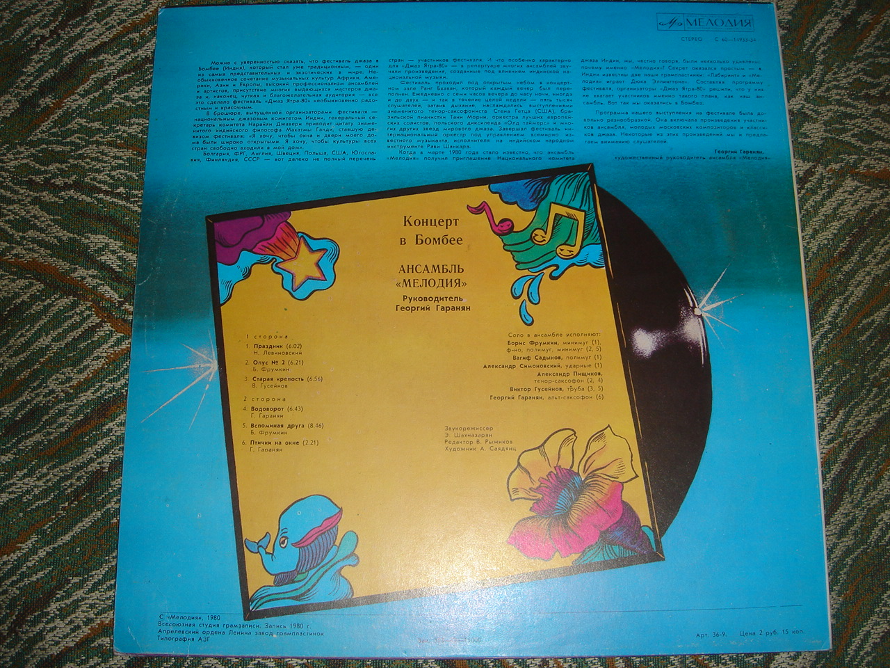 Странно, но на конверте стоит цена 3 рубля 50 копеек. Помню, было подорожание в те годы, столько стали стоить лицензии, а джаз, так же как и эстрада 2,50. Скорее всего, пересмотрели через несколько месяцев и смайнали до 2,50, помню от руки корректуру на конвертах.