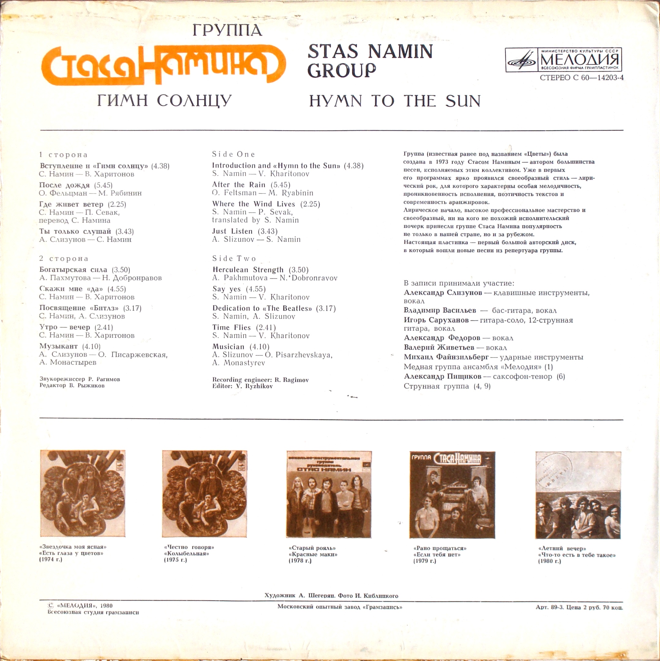 На 2 стороне "Зимняя песенка" - музыка Вильяма нашего Токарева!
