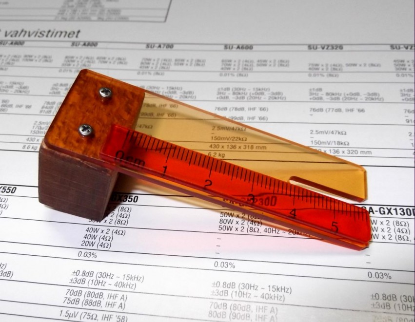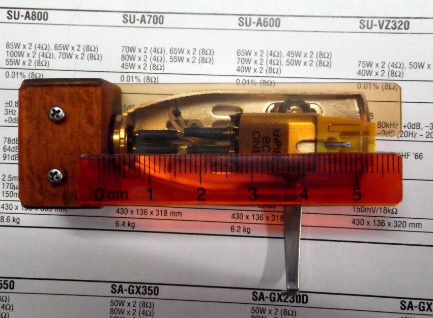 Очень удобная штука...Вылет более 15 мм.,большая редкость,да и 16 там в принципе можно установить.А так,уже на память можно всё выучить.Деноны почти все 48 мм.,с прямыми палками 38 мм.Викторы/ЖиВиСи-48 мм.,Сони и ПионЭры 49 мм.,Техникс-52 мм.,Кенвуды 48 или 51 мм.,в зависимости от модели,Сансуй 48 мм.,Аурексы 48 мм.,Ямахи тоже 48 мм.Достаточно штангель-циркуля.