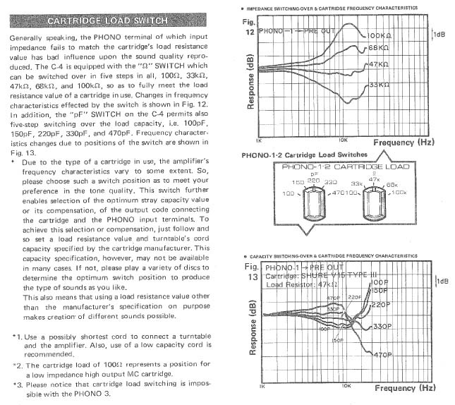 В инструкции на Yamaha C-4 достаточно наглядно продемонстрировано влияние ёмкости нагрузки за результирующую АЧХ в ВЧ области (рис. 13)