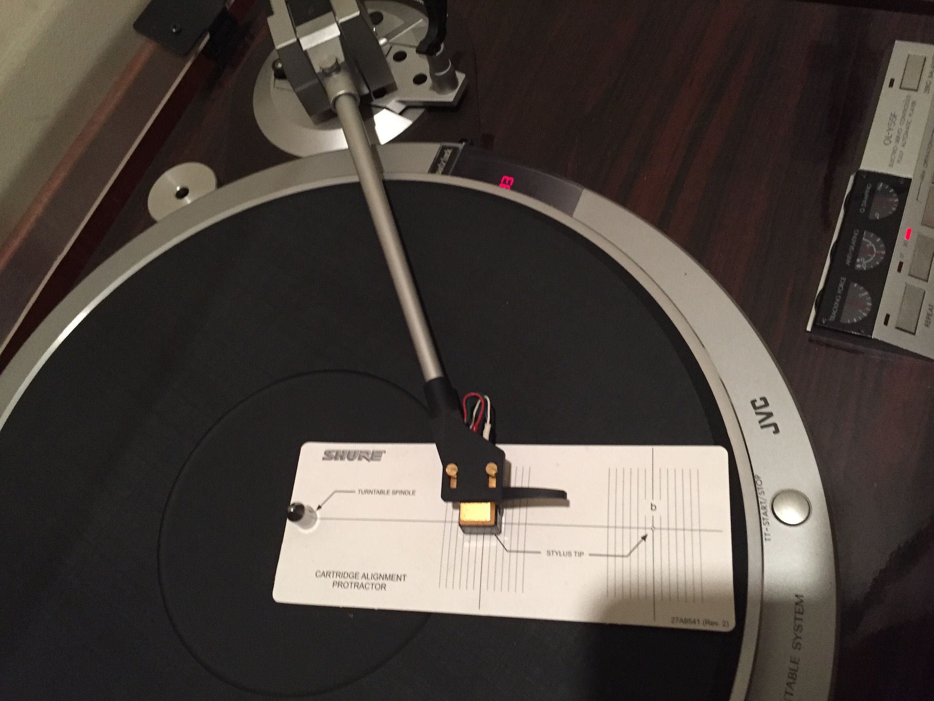 Ещё раз перепроверил,ну невозможно это с "Ортофоновским" шаблоном! Если бы кто нибудь выложил бы фото такого же шаблона с таким же проигрывателем и прямым тонармом.
