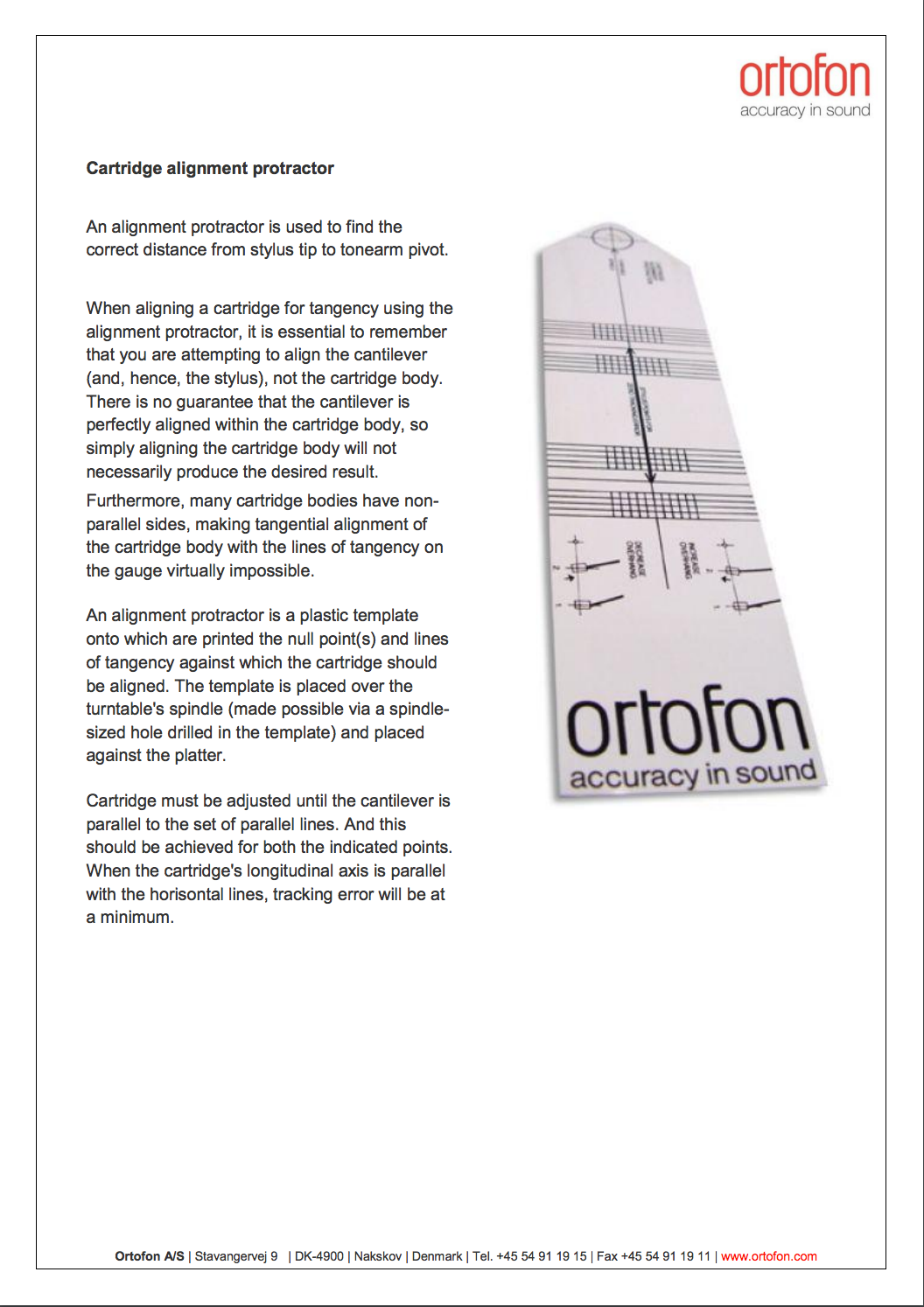 [TABLE][TR][TD]This plastic Ortofon protractor is a reliable way to ensure proper basic alignment of your standard half-inch mount cartridge of any brand. The goal is to avoid tracking error that especially occurs as your needle plays songs towards the inner part of the record. [/TD][/TR][/TABLE]