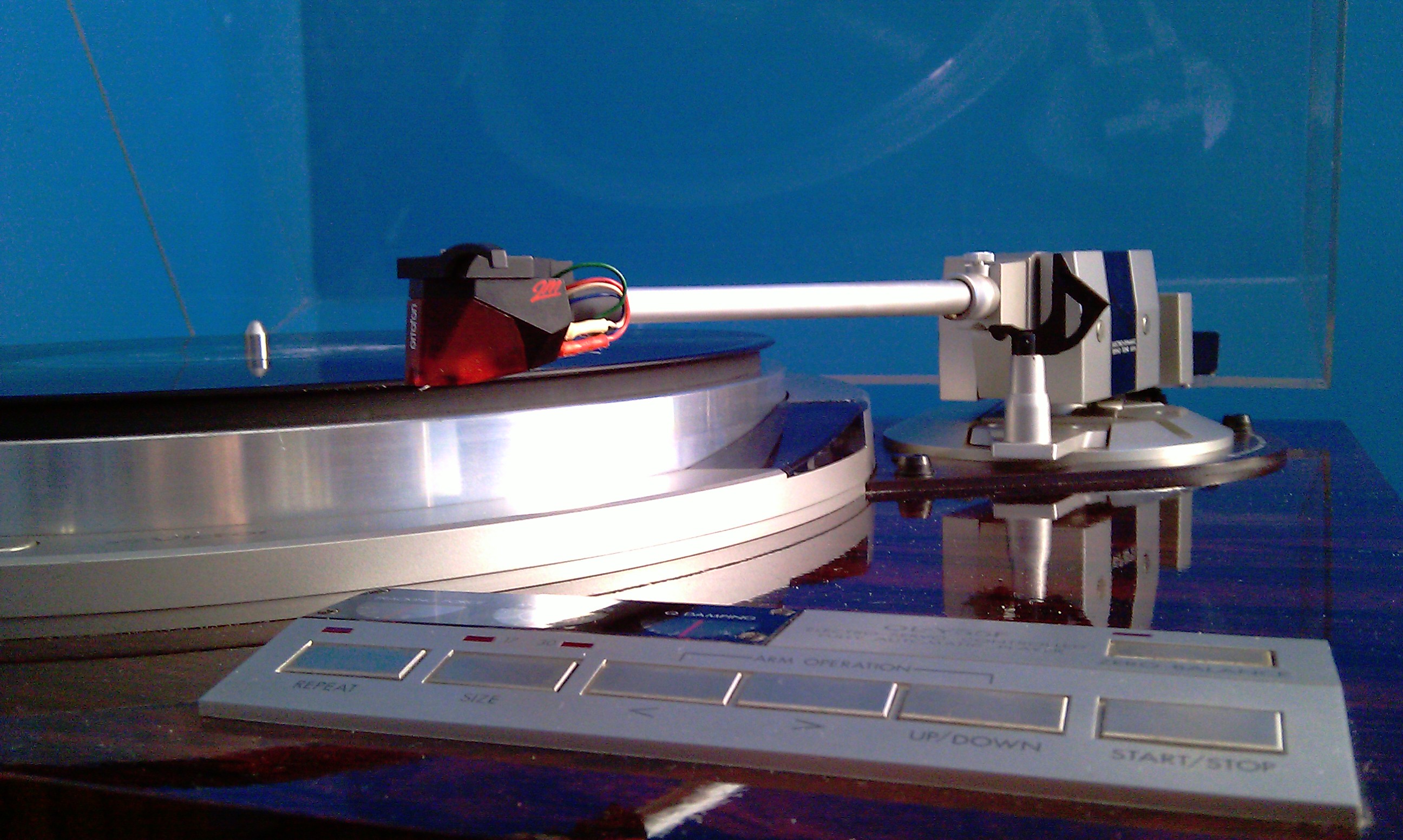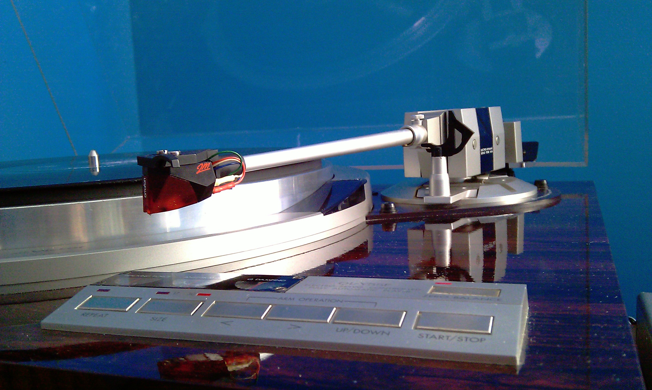 В выключенном состоянии тонарм задран вверх,при нажатии POWER тонарм опущен вниз,при нажатии ZERO тонарм горизонтален при этом противовес отодвинут до предела назад,если всё правильно,то вопросы пока закончены.