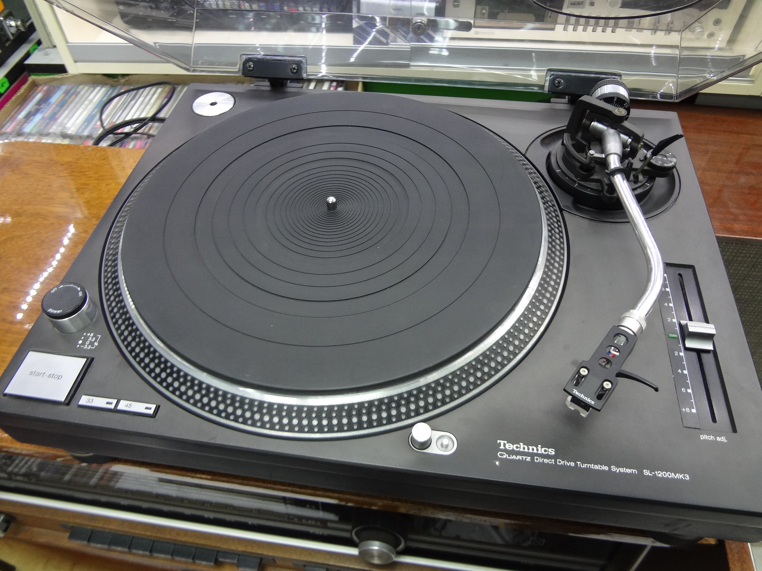 Здравствуйте, уважаемые Любители винила! Хочу избавиться от своей первой вертушки и приобрести Technics SL-1200 MK3. Продают за 45 тыр. Из минусов: видна небольшая вмятина на передней панели под словом "Quartz"(как-будто что-то уронили на это место); не работает светодиодная подсветка места опускания тонарма на пластинку; помятая клемма заземления. Картридж - Shure M44-7. Люфтов в тонарме нет. На задней панели написано 100V, а на вилке 125V. Интересно, что означает "MAW" на задней панели - может от названия фирмы "Matsushita"? Есть возможность проверить работу аппарата на месте, проигрывает пластинки нормально, качество звука радует. Просьба к знатокам данной модели оценить по фоткам его примерное состояние и стоимость, не много ли хотят? Заранее благодарю.