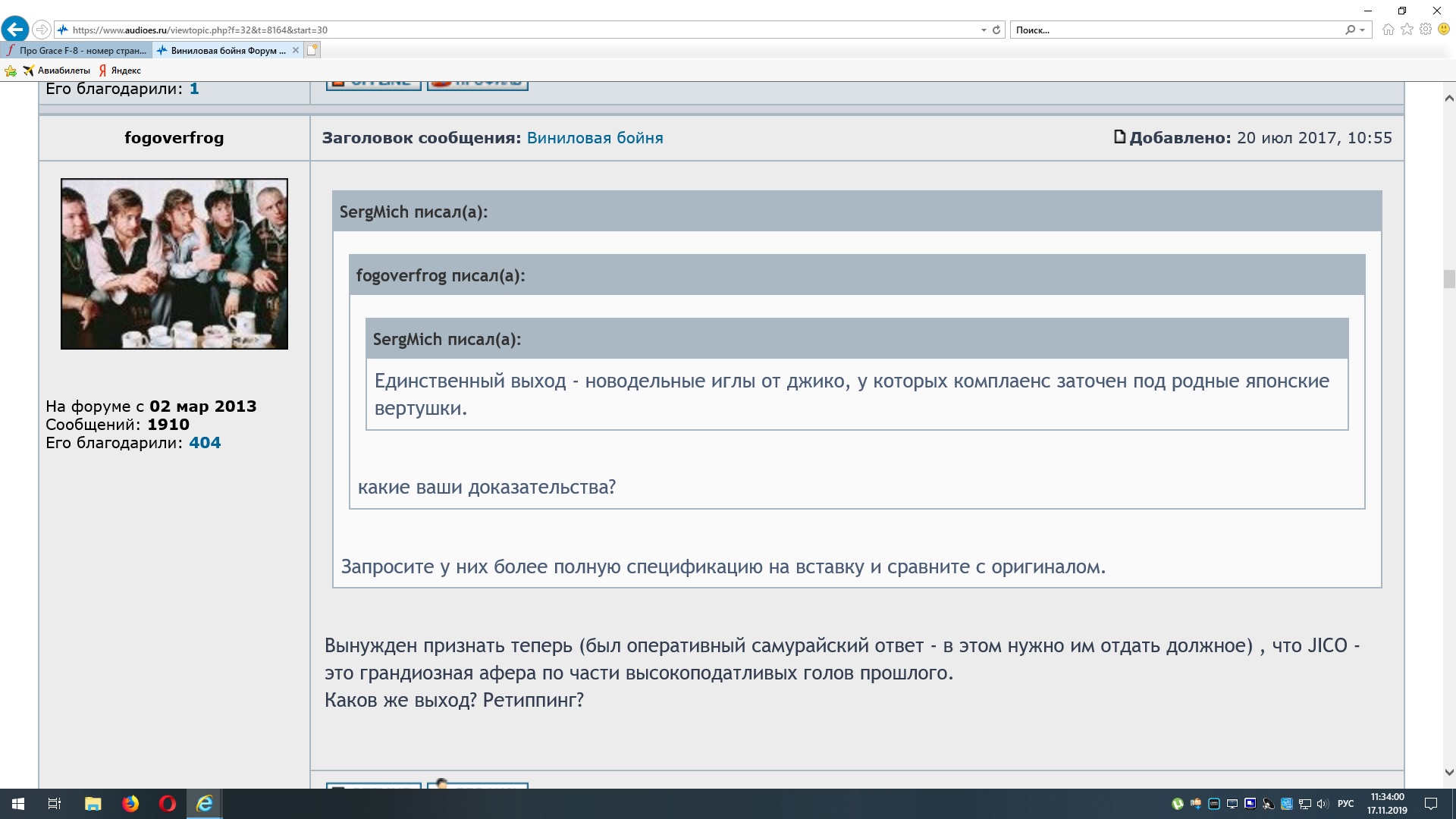 Shure VN35 в Grace F-8 до конца не садится и болтается в посадочном - трубка у шура длиннее на 3 мм и тоньше.