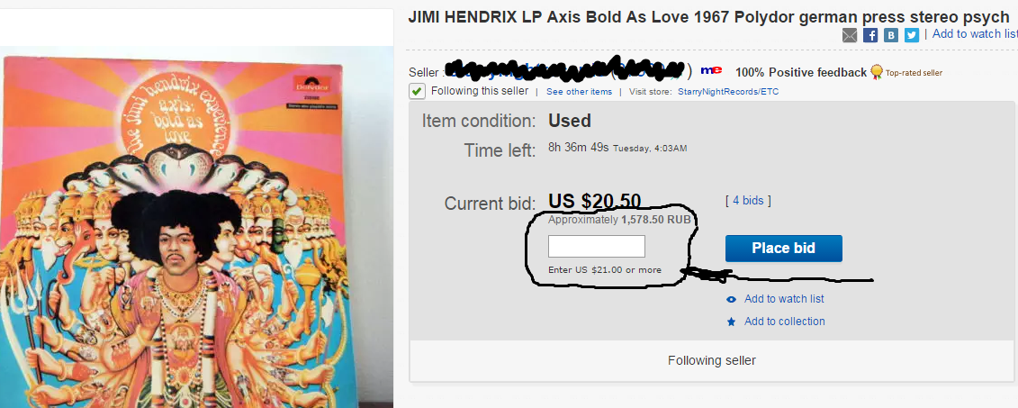 Вчера смотрел за торгами на один тонарм на ибэе. Никогда покамест в них не участвовал. Но неприятно поразило следующее. Участнику торгов сразу предлагается сделать свою максимальную ставку, а дальше будут соревноваться не участники , а максимальные ставки. То есть то, что в принципе можно было бы купить подешевле, торгуясь с оппонентом, вам сделать не дают, а сразу раскручивают на максимум. Меня эта политика немножко расстраивает и приводит в недоумение. Изя как-то уже высказывался на эту тему. А что думаете вы?