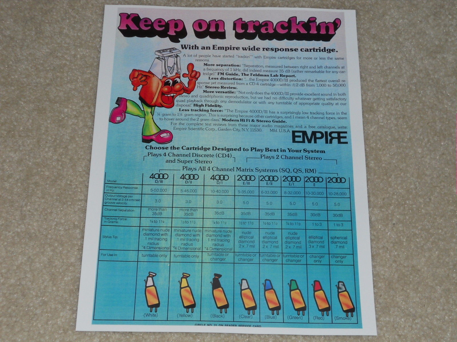 ...если игла действительно S906е ( хотя я мог и ошибиться ) - то прижим может быть до 2,5 грамм ..... Второй мой картридж Эмпайр - тот вообще имеет прижим от 2 до 3,5 грамм . И играет при этом очень даже замечательно ....