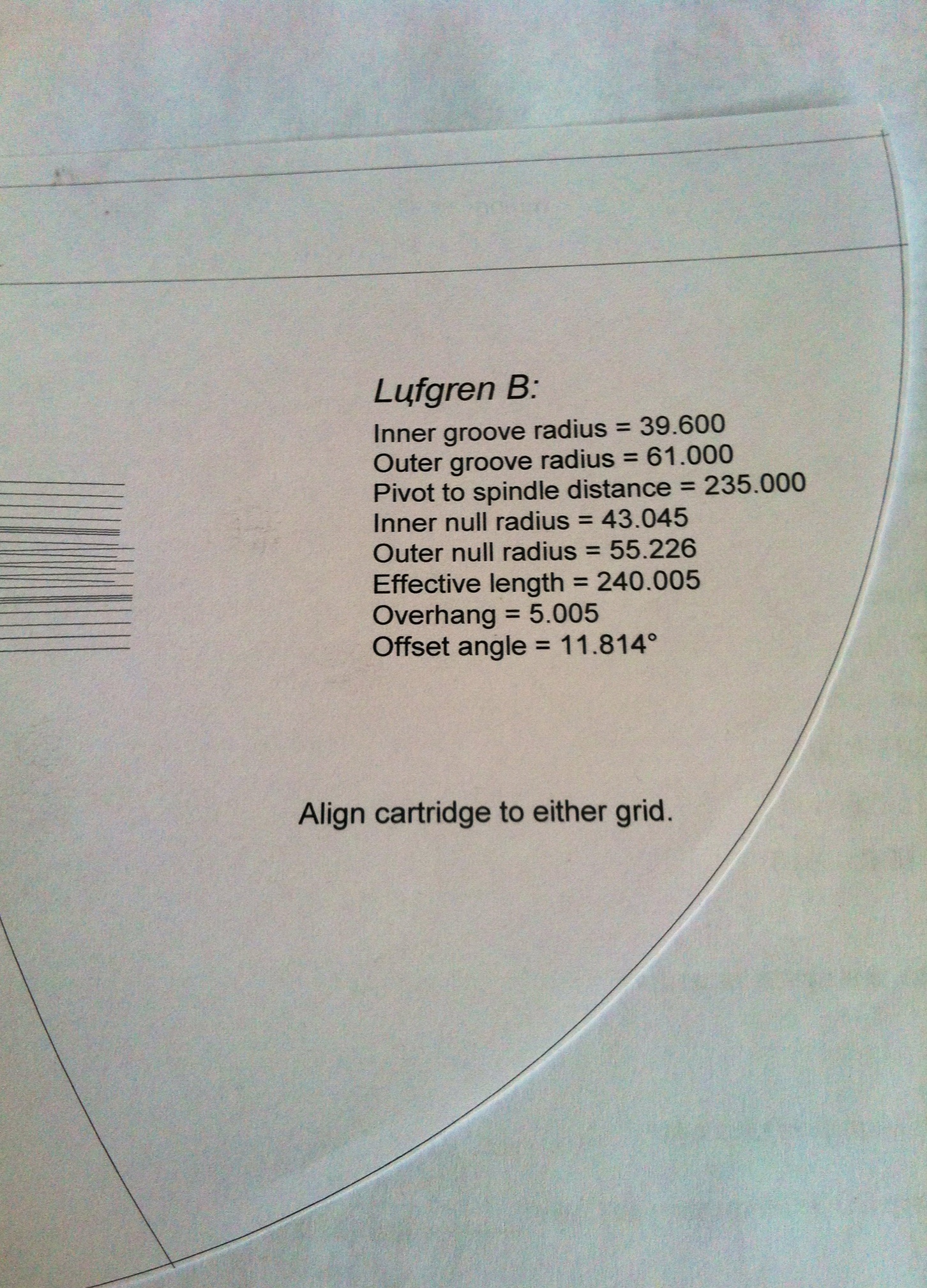 Вот на шаблоне написано эфф.длинна 240,pivot to spindle distance 235. 235 это расстояние от шпинделя до центра основания тонарма?