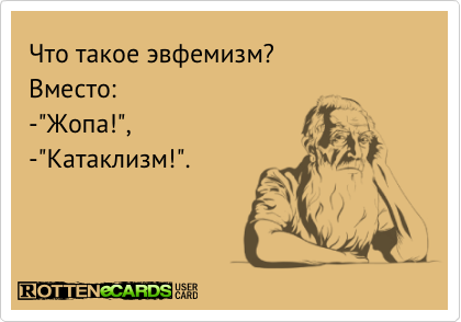 (от греч. euphémia — воздержание от неподобающих слов, смягчённое выражение) замена грубых или резких слов и выражений более мягкими, а также некоторых собственных имён — условными обозначениями. По простому....что бы не посылать матом.