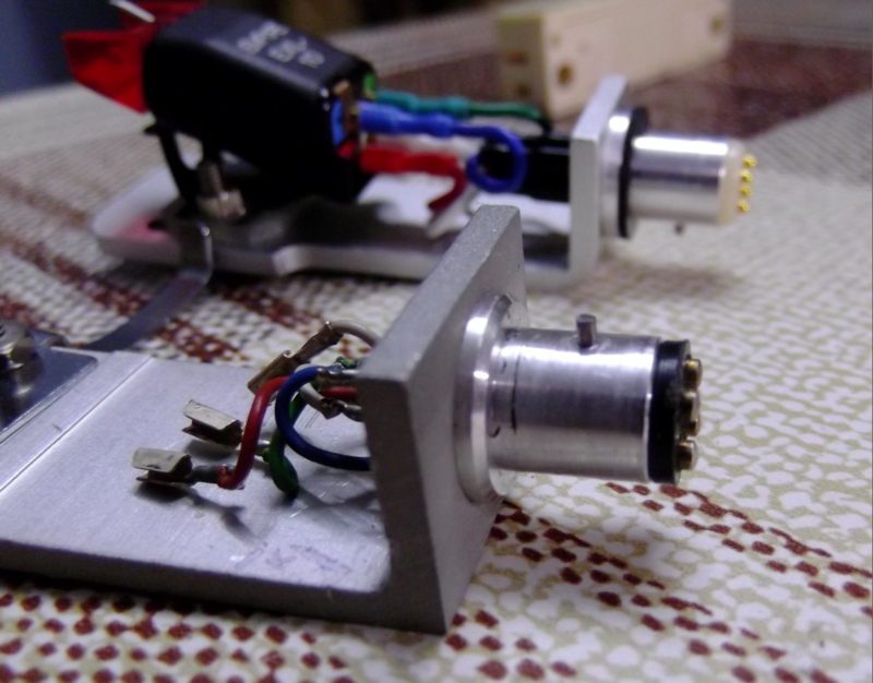 Вот - стандартный шелл ( ортофоновский ) и шелл от Арктура ( унитровский ) . Арктуровский шелл можно установить в импортную вертушку - это проверено ( хотя сделан он очень коряво ) - у импортных вертушек прорезь в разъеме трубки тонарма вертикальная и позволяет переворачивать шелл вверх ногами ... Как обстоит с этим в артуровском тонарме - я уже и не помню . Смотреть надо .... У арктуровского шелла контактная группа никуда не годится - всё люфтит и болтается .....На фото видно - что ключ у арктуровского шелла расположен по другому