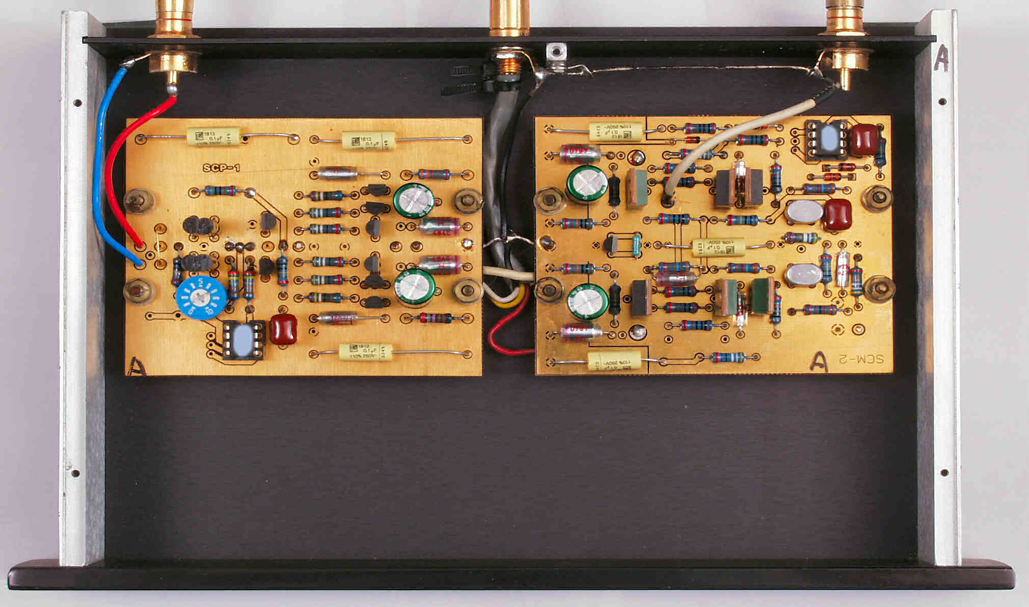 Интересен сам принцип,так сказать концепция железки... Первый каскад без общей ОС,с высоким выходным сопротивлением,нагружен на RC,для формирования RIAA,от 1кгц и выше.А второй уже обеспечивает усиление от середины и ниже. Я вполне могу попробовать это в моём Трешхолде. На каждой плате стоят свои фильтры на полевиках. Вторая плата довольно горячая,выходные стоят в каскоде,с током где то 10ма. Я ещё не до конца там всё причесал,восстанавливал по фоткам.(был сильно переделан,ну и естественно нормальный звук отсутствовал,японцы ....) Я тут рассказывал,про аккумуляторный фоно,так тоже мне его пришлось делать,он просто не работал,по причине не правильной сборки. |