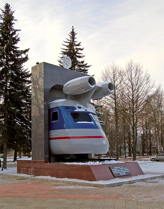 Был полноценным аэровозом ,я видел как он гонял по рельсам. Не пошел в серию из-за шума ,который производил при движении. Но смотрелся со стороны оч. солидно! Почему-то на обелиске обрезан вертикальный киль-хвост, он был полноценным как у самолета. |
