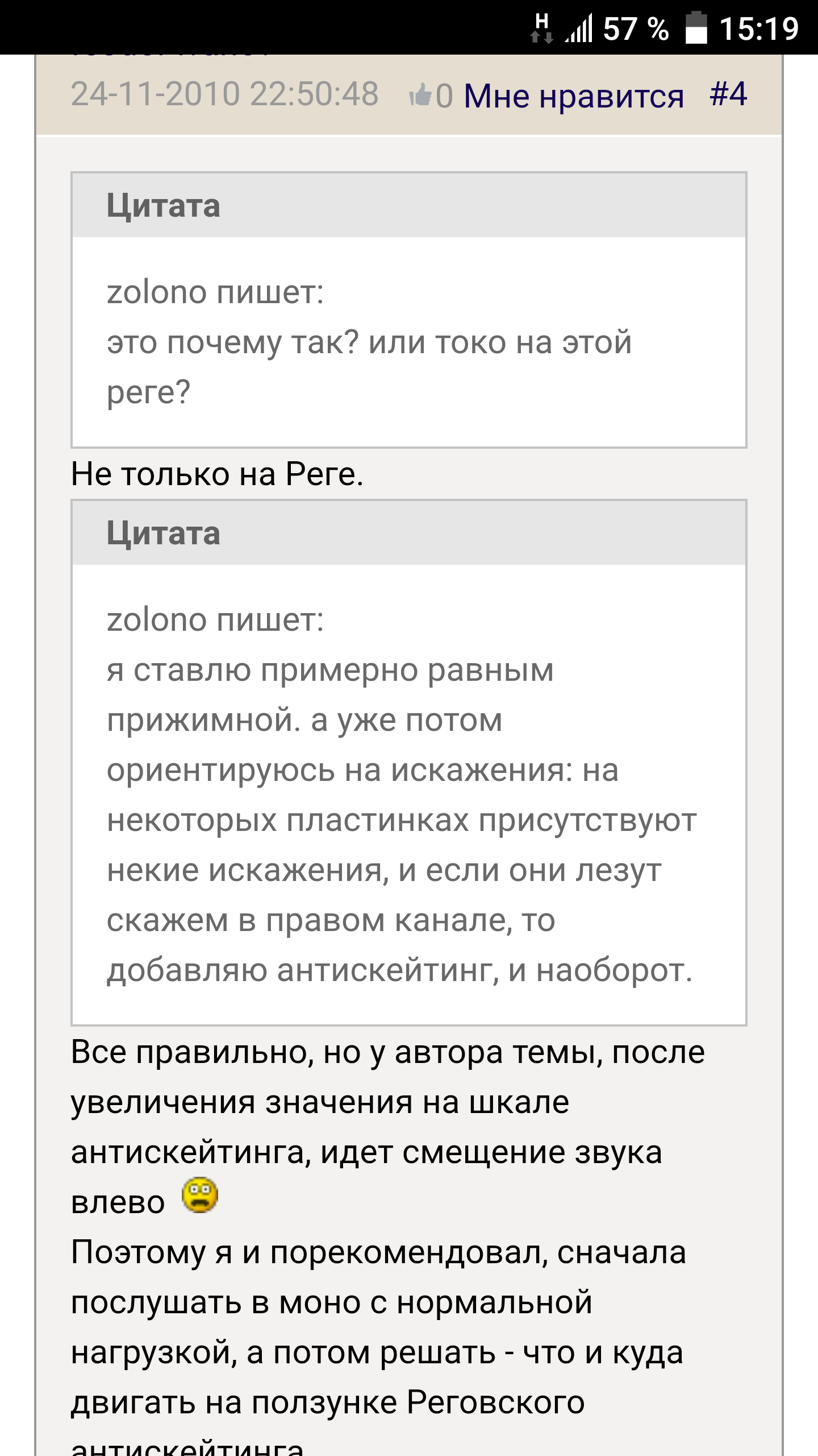Если я переставляю эти головы с тем же прижимом на тонармы с регулировкой антискейта до 3 гр, то выставляю значение в 0.