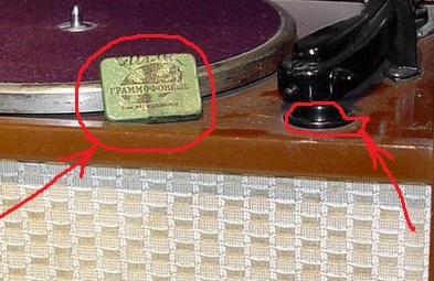 Я точно помню, что туда вставлялись стальные патефонные иглы. А справа внизу "плинта" - круглая емкость для игл.
