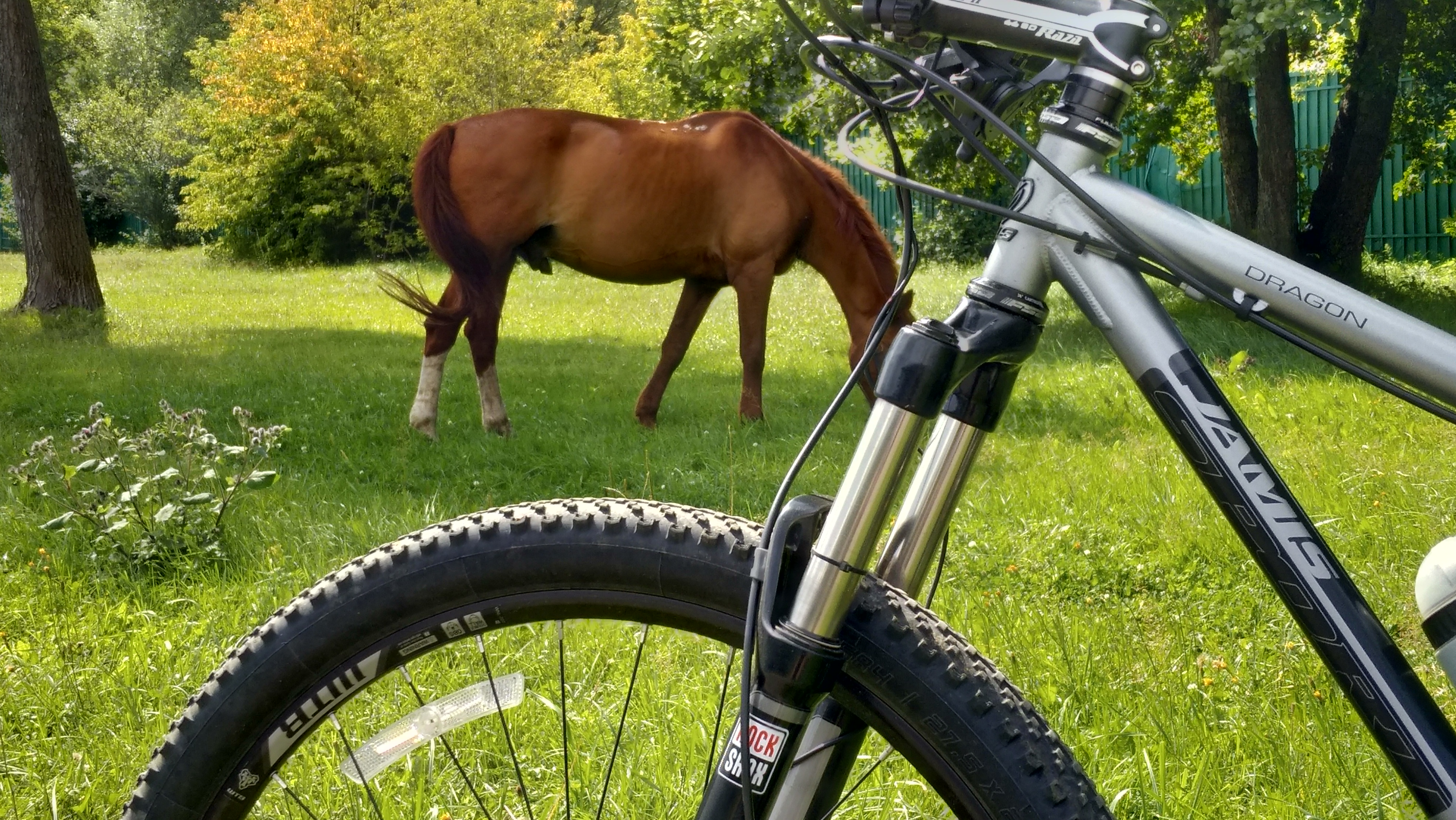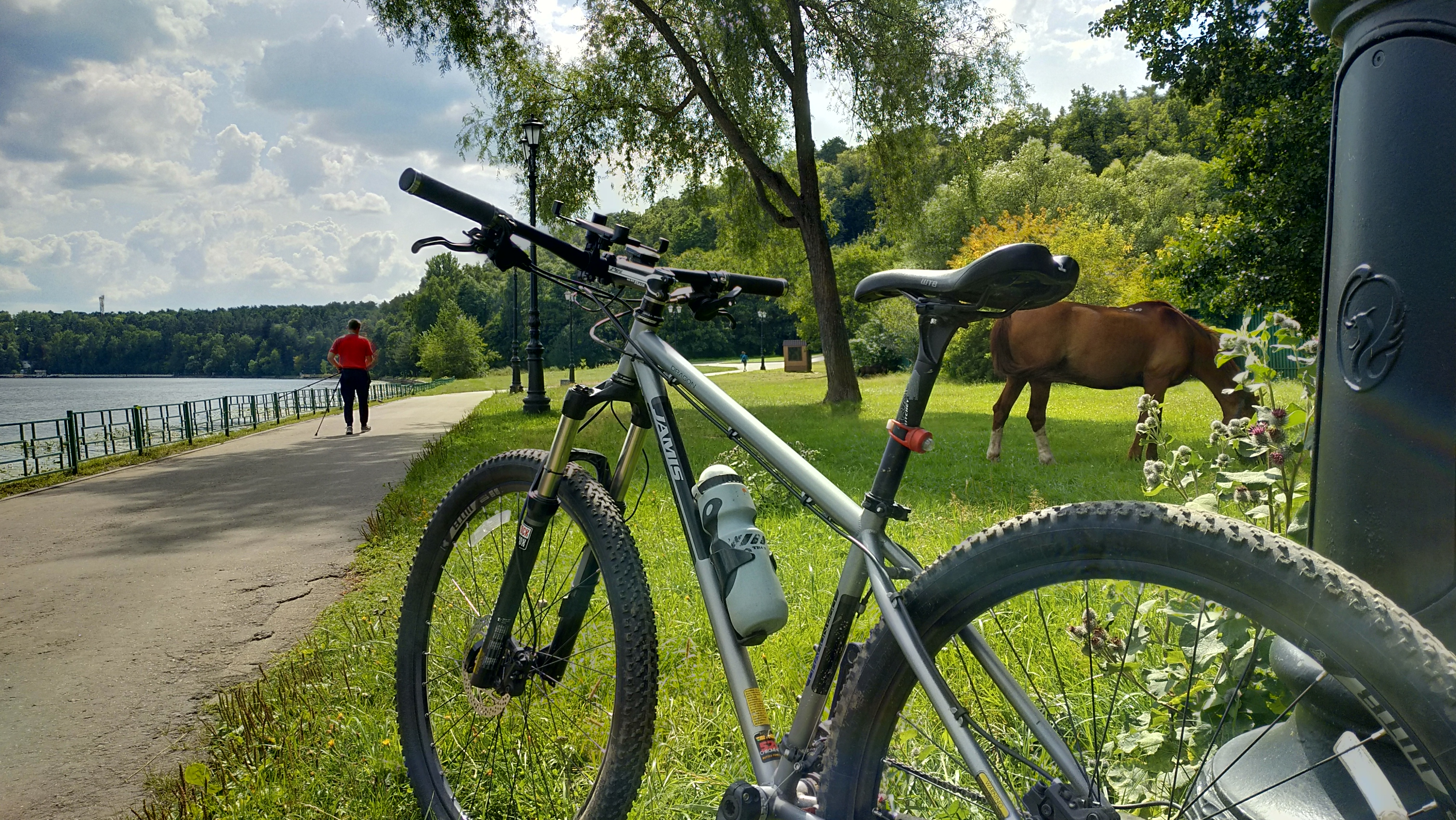 Сегодня на набережной в Строгино встретились два классных коняки. |