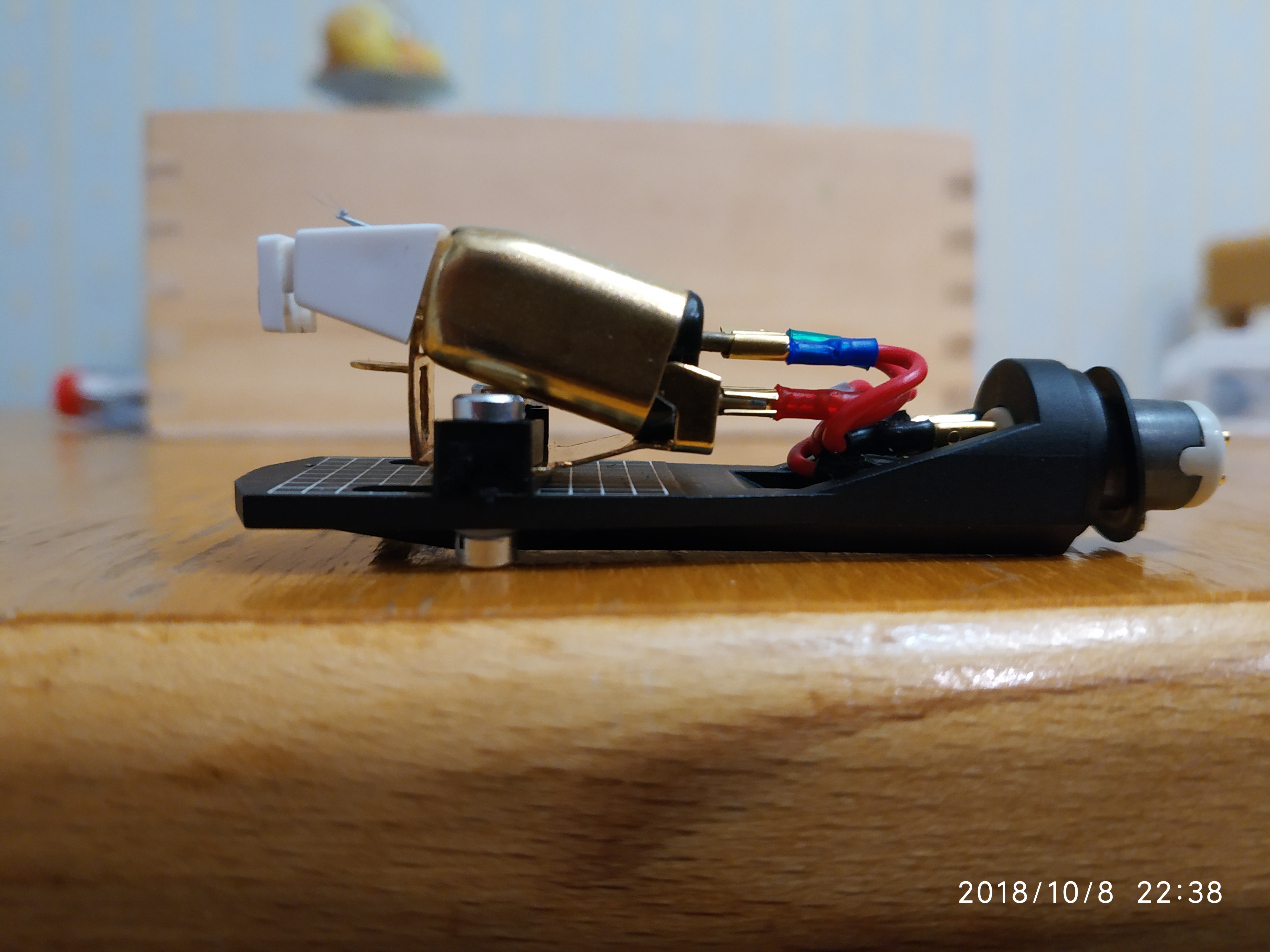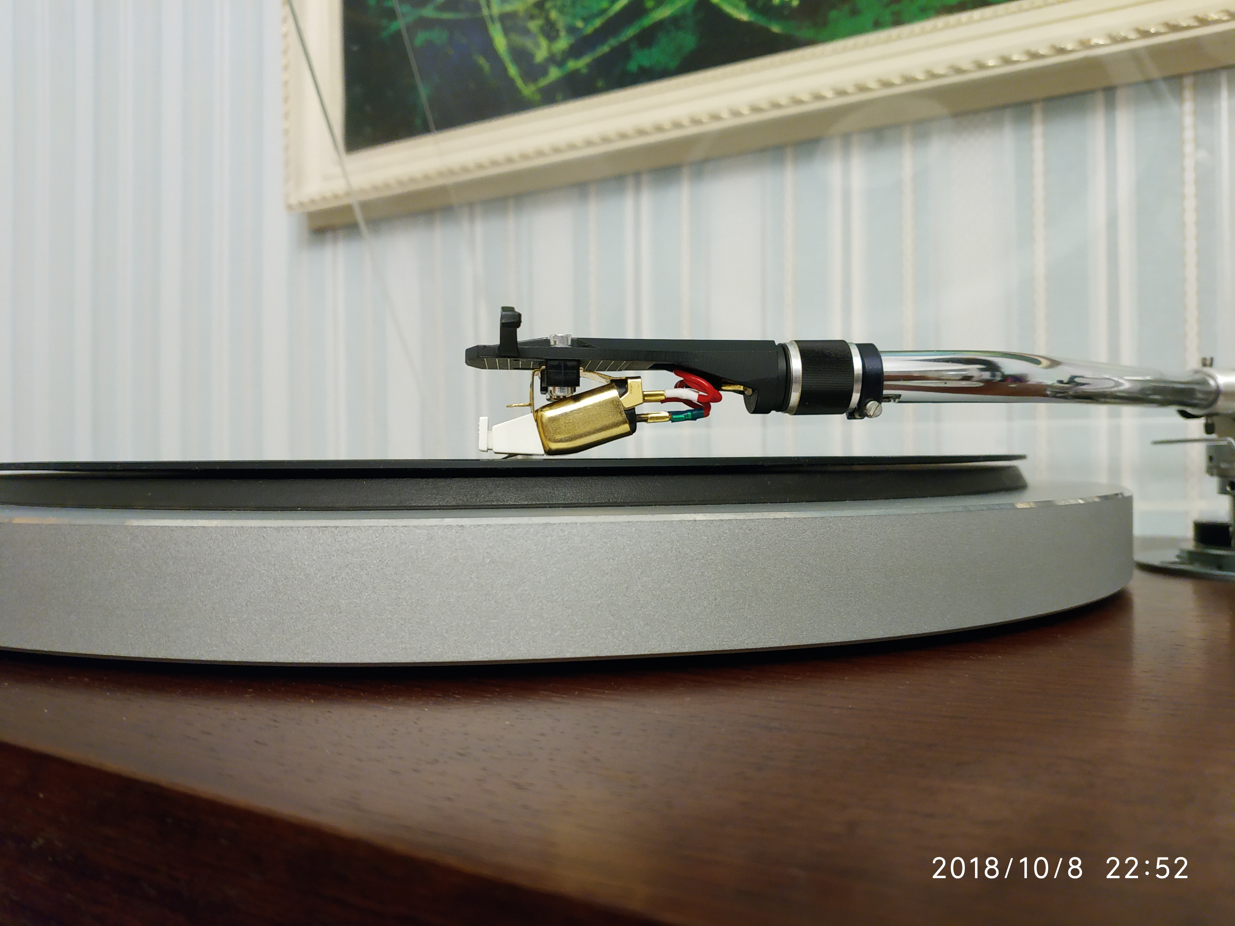 Вот припустил тонарм на пару миллиметров вниз. Нос сразу задрался.... Печаль.